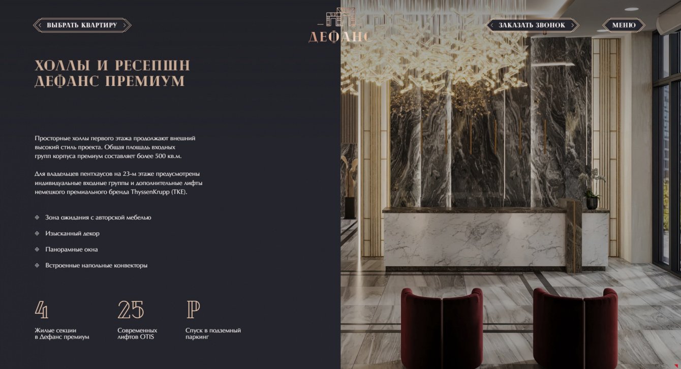 Проект ДЕФАНС создан аритектурным бюро «Студия 44» и состоит из домов премиум и бизнес-класса.