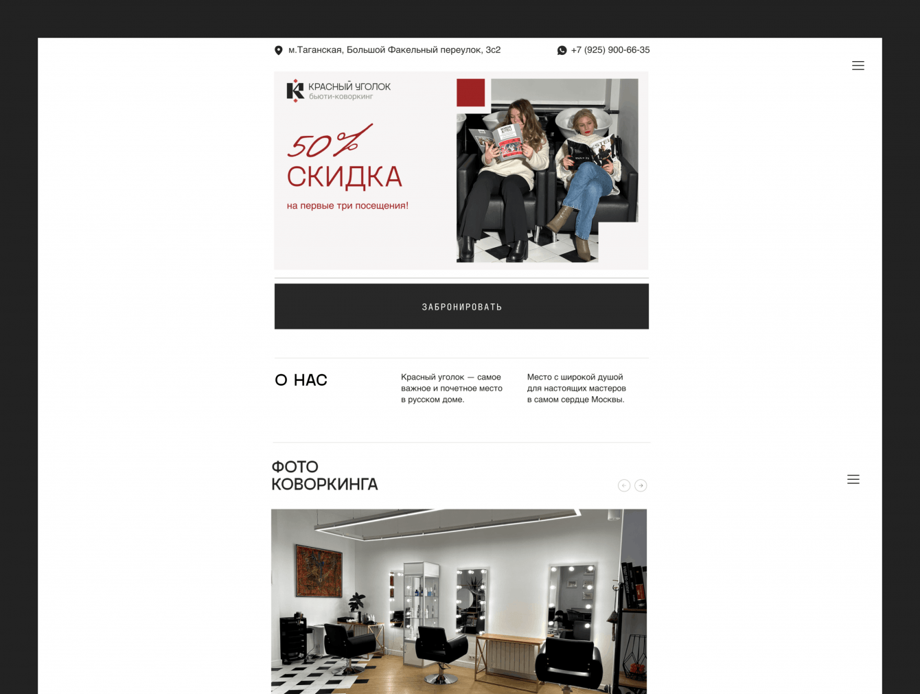 В результате нам удалось создать сайт, который соответствует фирменному стилю «Красного уголка» и передает его уникальную атмосферу.