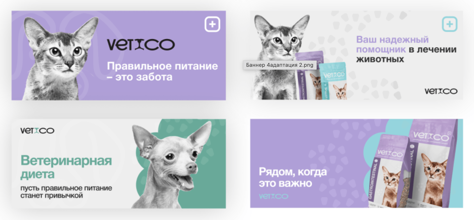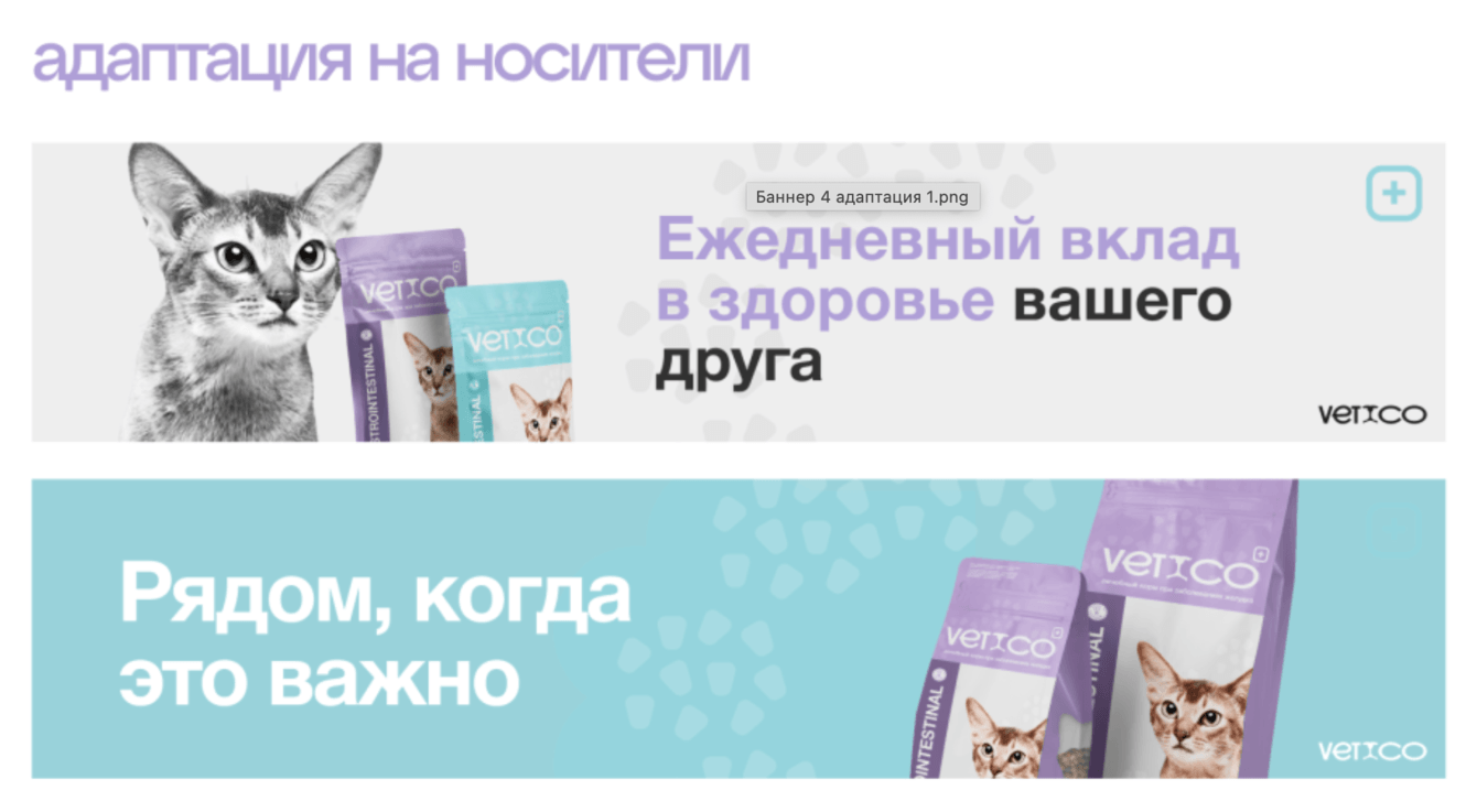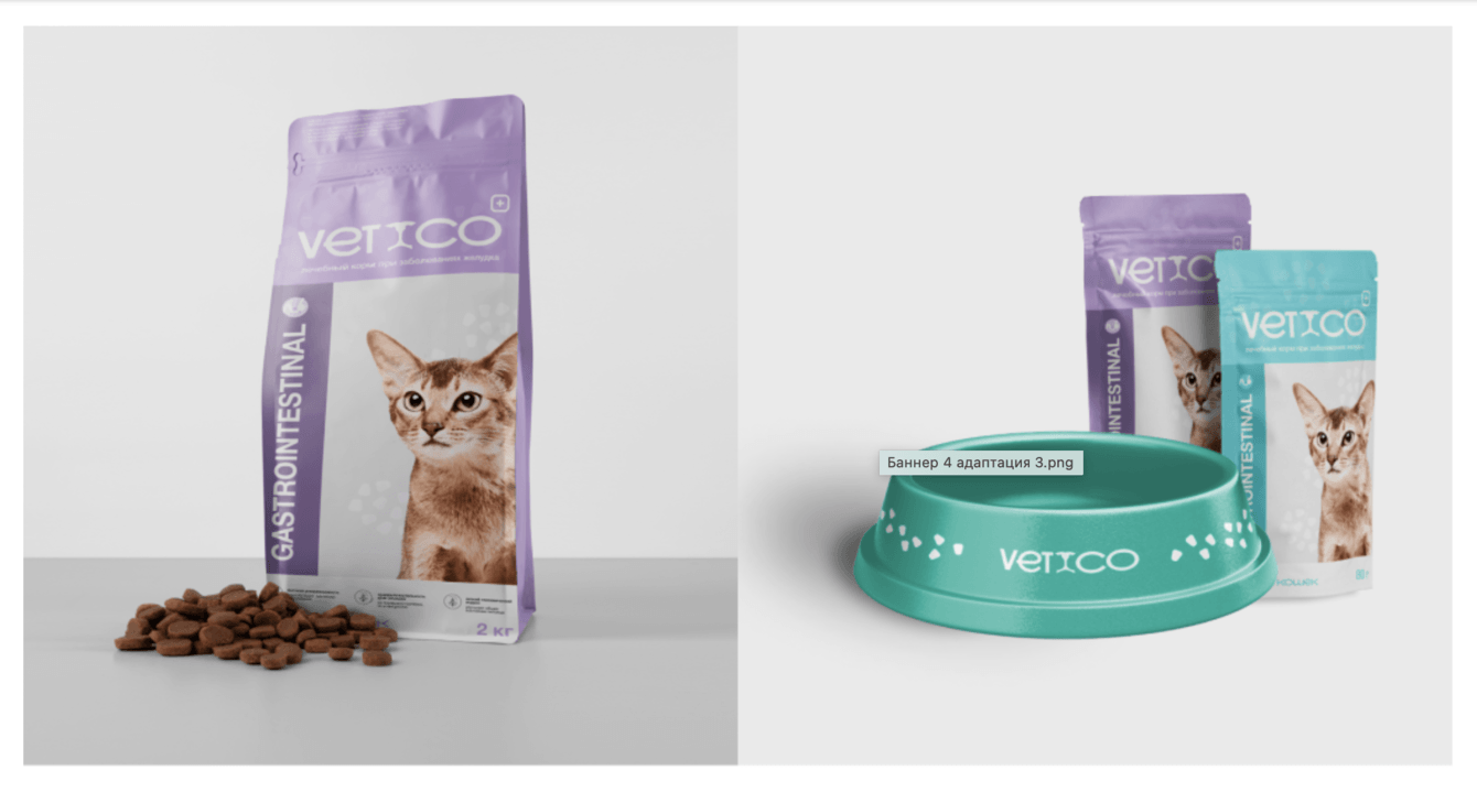 Важно было сохранить располагающую упаковку, показать профессионализм и при этом не уйти в стилистику спецкормов. Ведь Vetico — это не питание при реабилитации, а корма под конкретную проблему или для профилактики.
