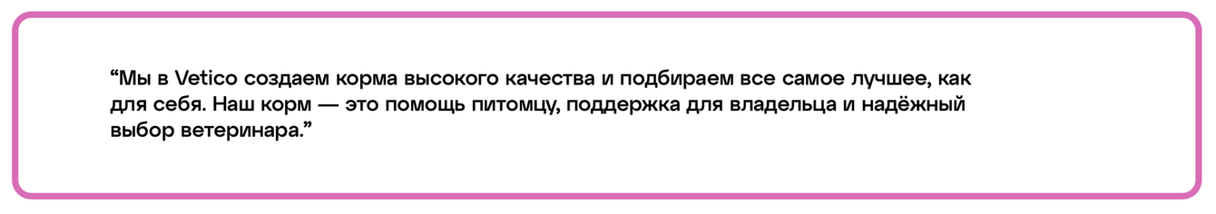 Мы использовали игру слов: VETICO. Корень VET (ветеринарный) придаёт экспертности, а ECO отсылает к глобальной экологичности, уважительному и осознанному подходу.