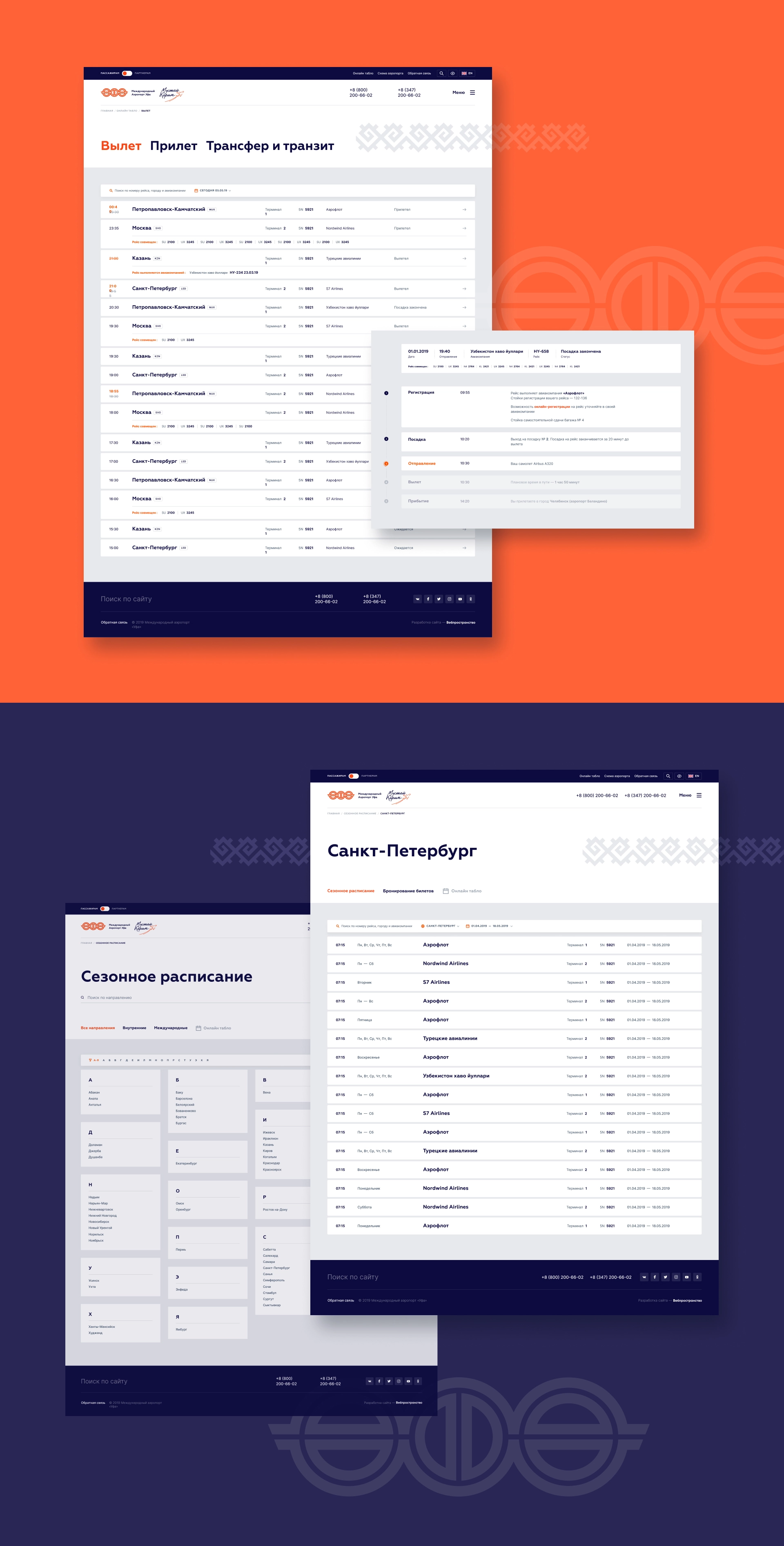 На этапе дизайна получили новые вводные о том, что аэропорт получил имя Мустая Карима. А значит, это обязательно нужно было учесть в работе. Также для заказчика было важно, чтобы использовали национальный колорит в виде узора. В связи с этим скорректировали главную страницу и внутренние контентные.