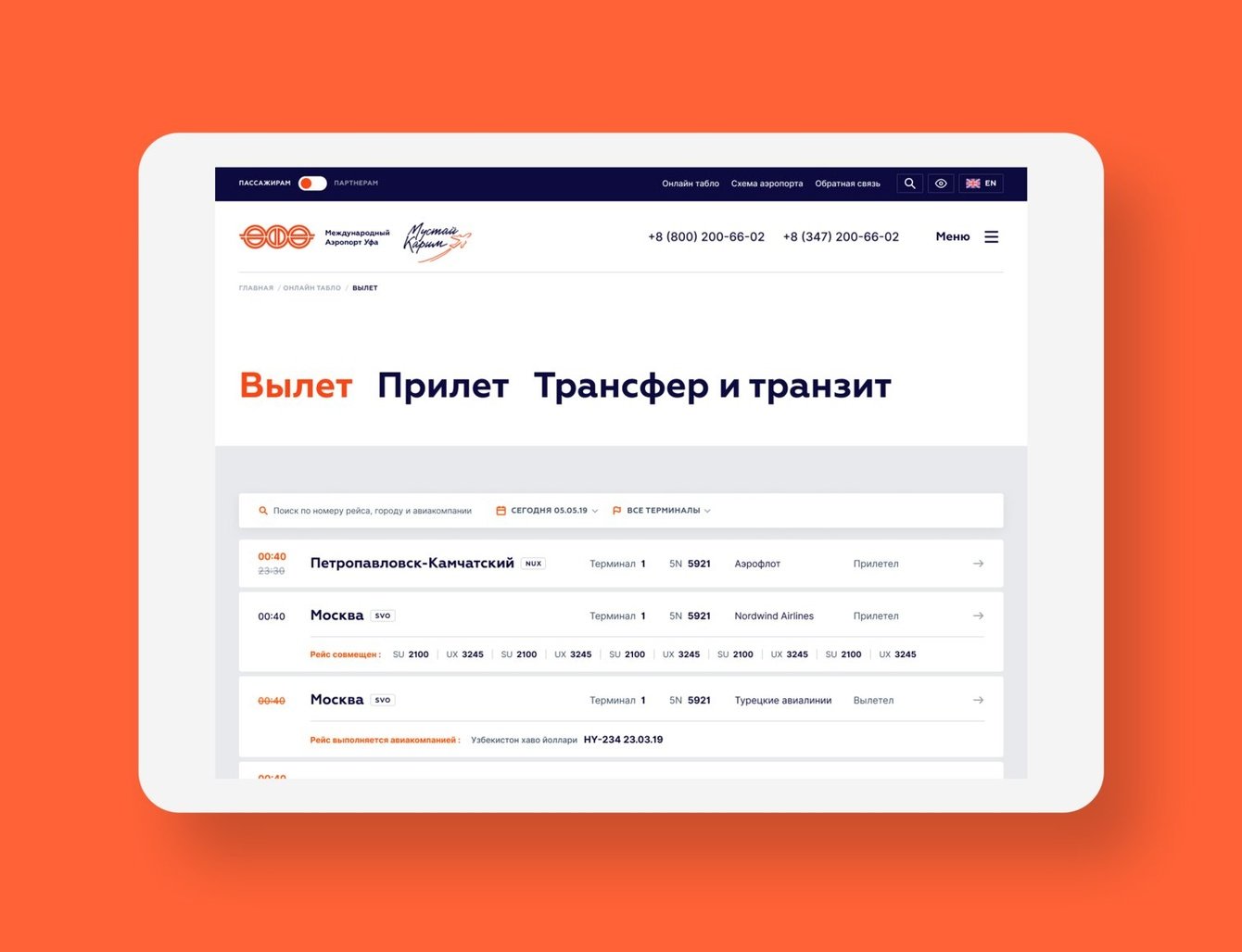 Разработать новый адаптивный сайт аэропорта «Уфа» с интеграцией с сервисами онлайн-табло и сезонным расписанием.