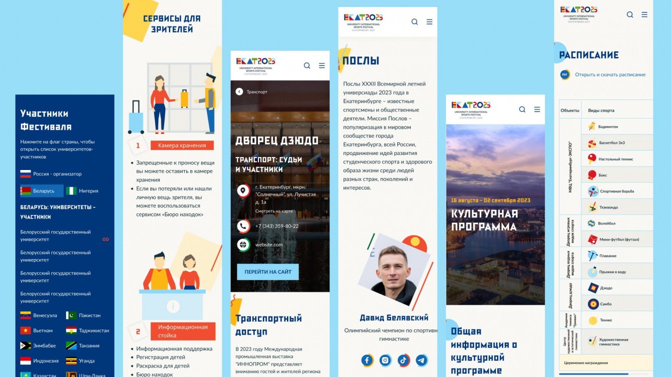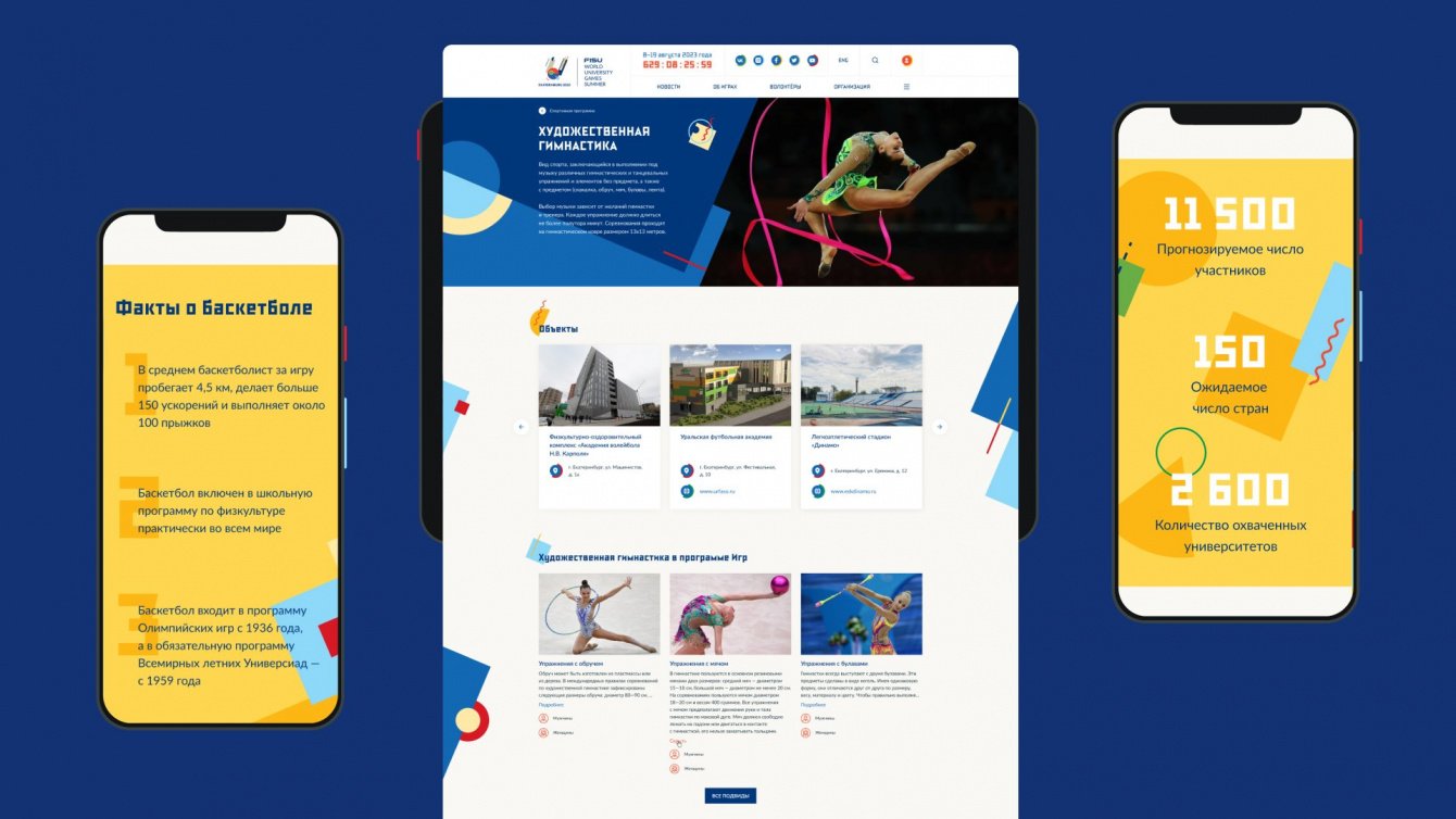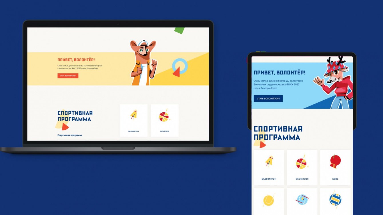 Оформление — мы не только доносим информацию, но и создаем у гостей фестиваля общее впечатление о городе, стране, атмосфере соревнований. Здесь работают инструменты брендирования сайта — верстка, логотип, шрифт, маскот. Мы бережно и аккуратно использовали материалы оригинального брендбука.