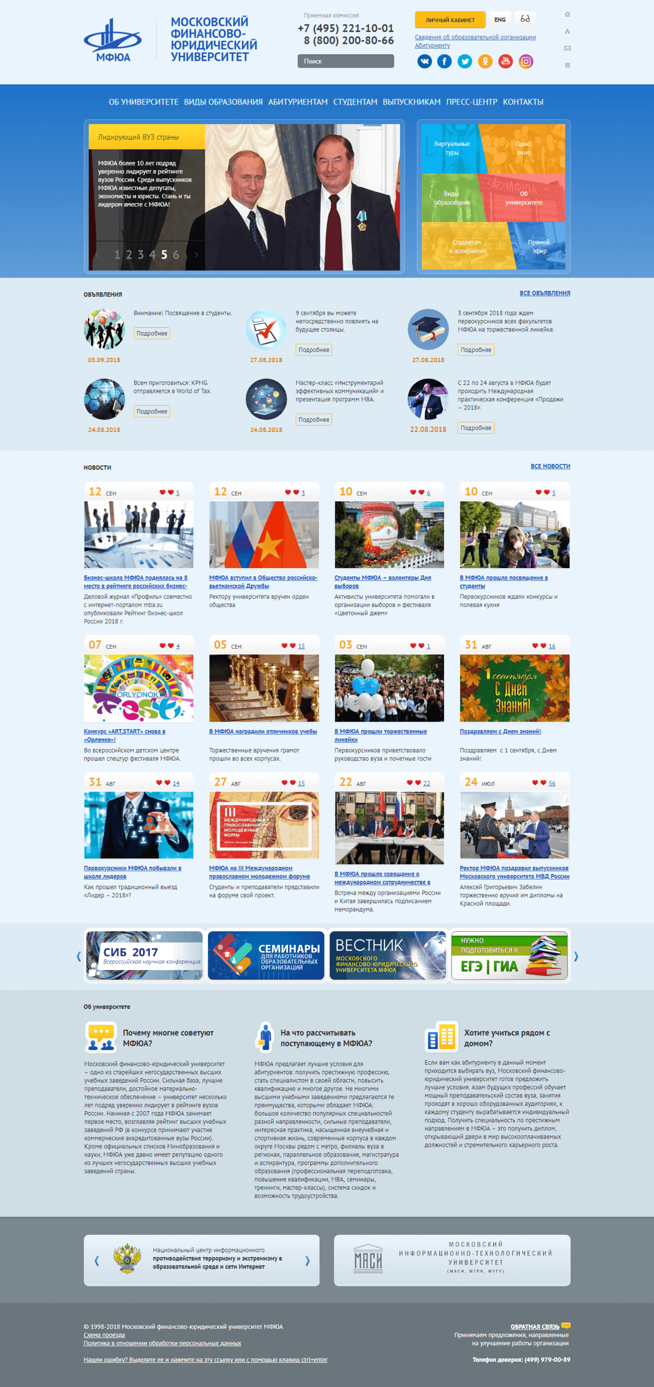 Наше сотрудничество с университетом длится более 10 лет. За годы работы были и запуски новых сайтов, и редизайн существующих, и различные интеграции с внутренними учетными системами.