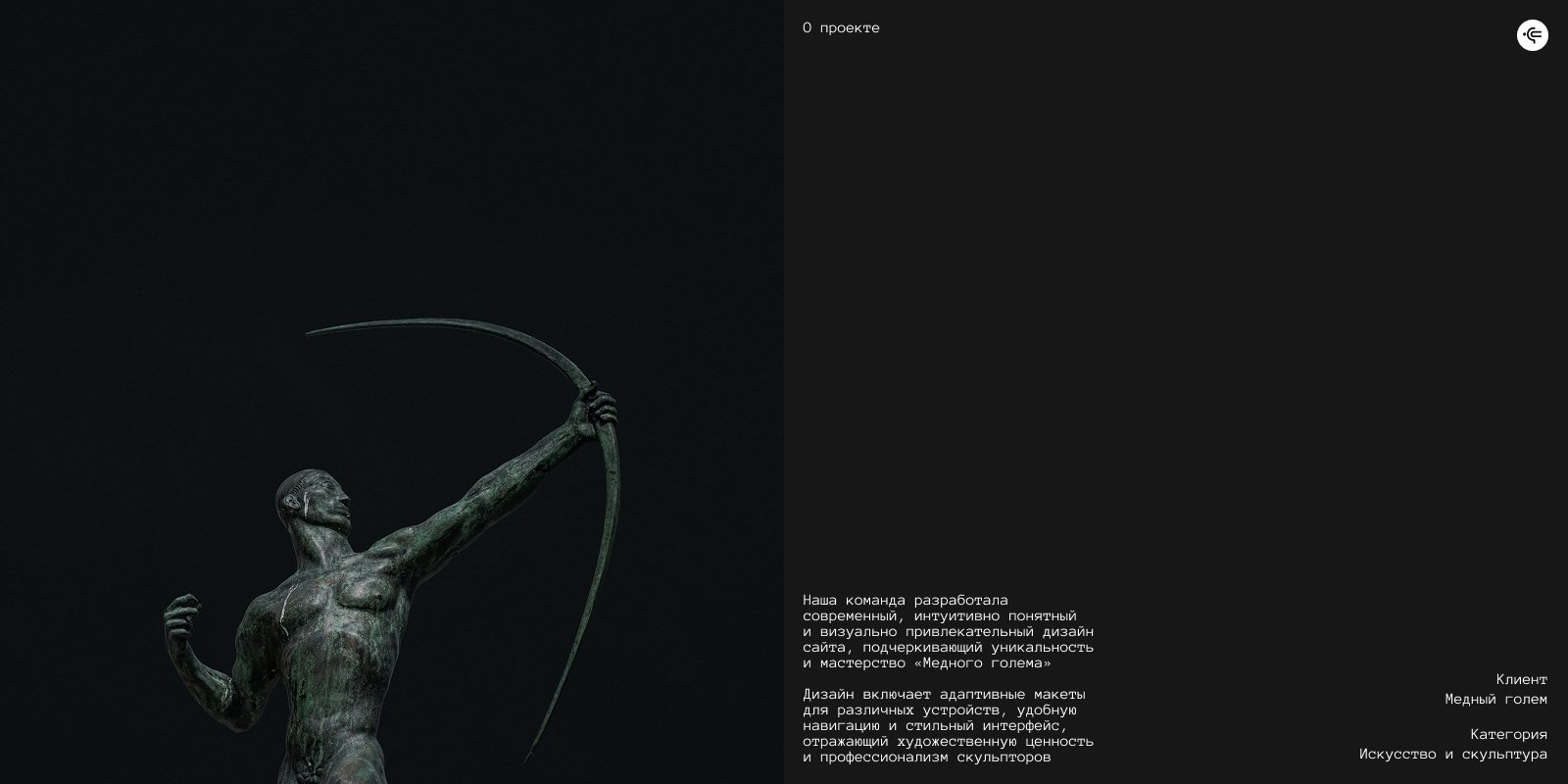 Этот проект напомнил нам, почему мы любим свою работу: возможность создать нечто по-настоящему масштабное и захватывающее. „Медный голем“ стал примером того, как можно превратить технически сложную задачу в эстетичный и вдохновляющий результат. И когда мы поняли, что можем сделать ещё лучше, мы просто не смогли остановиться. Сайт стал отражением духа мастерской — монументальным, современным и готовым к любым вызовам!