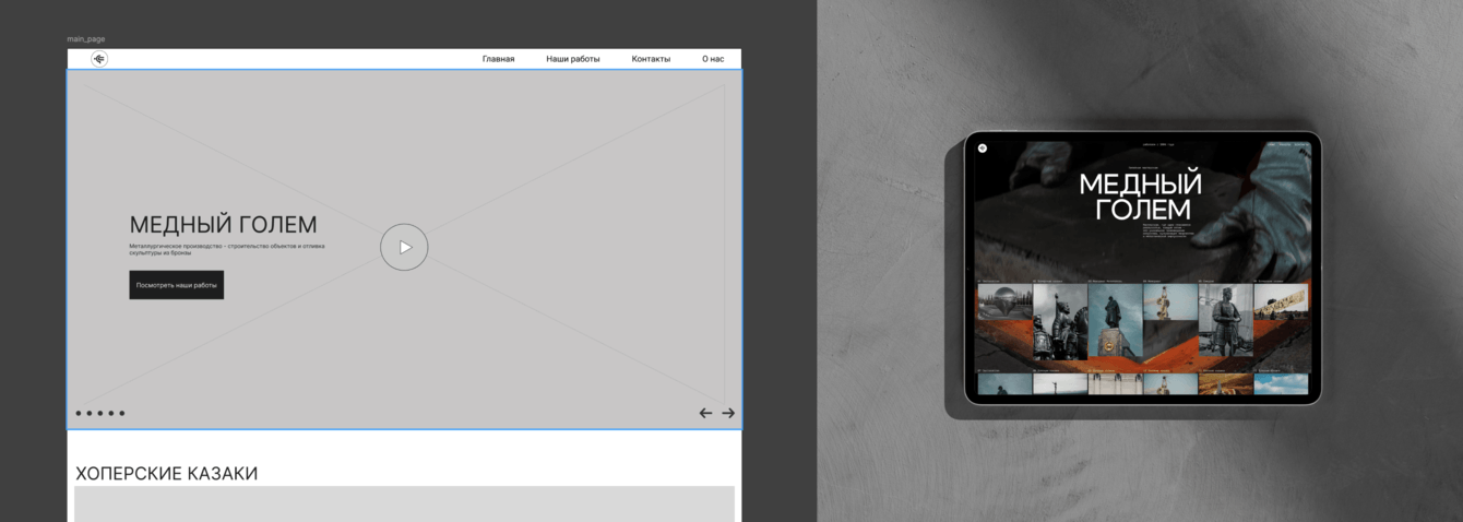Все акты были подписаны, сайт вышел в открытый доступ, первые посетители уже оставляли заявки… а у нас оставалось ощущение, что чего-то не хватает. В дизайне не хватало именно той монументальности, которая отражала бы масштаб «Медного Голема».