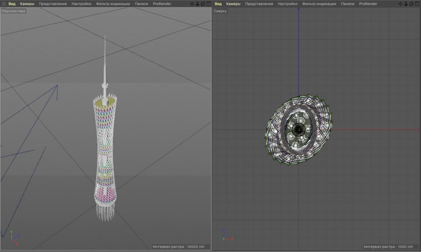 Для подготовки корректной модели реально существующего объекта приходилось искать чертежи здания в разных проекциях в интернете. А чтобы её анимировать, мы делили модель на сегменты и настраивали их плавное появление.