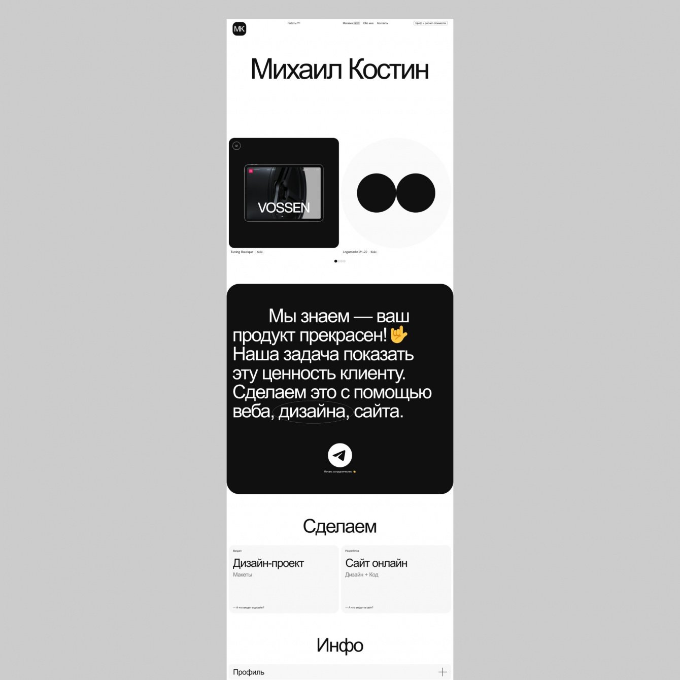 Сайт объединяет кейсы Behance и работы Dribbble в единое целое.
