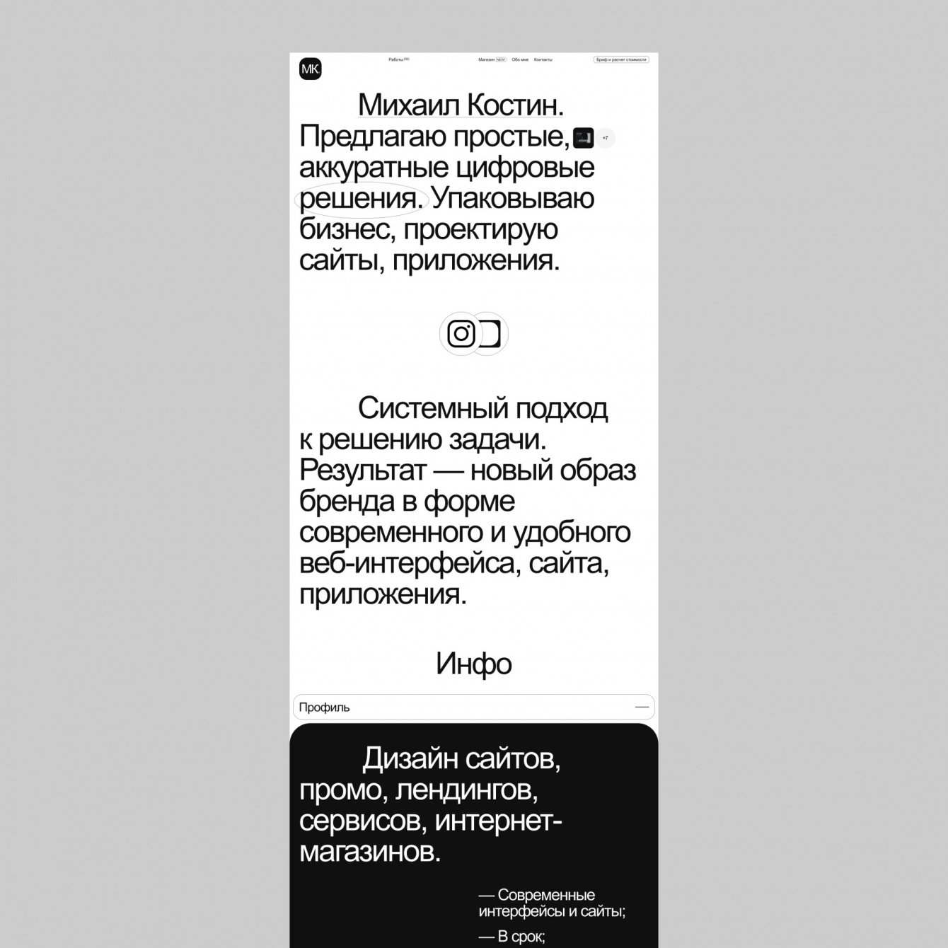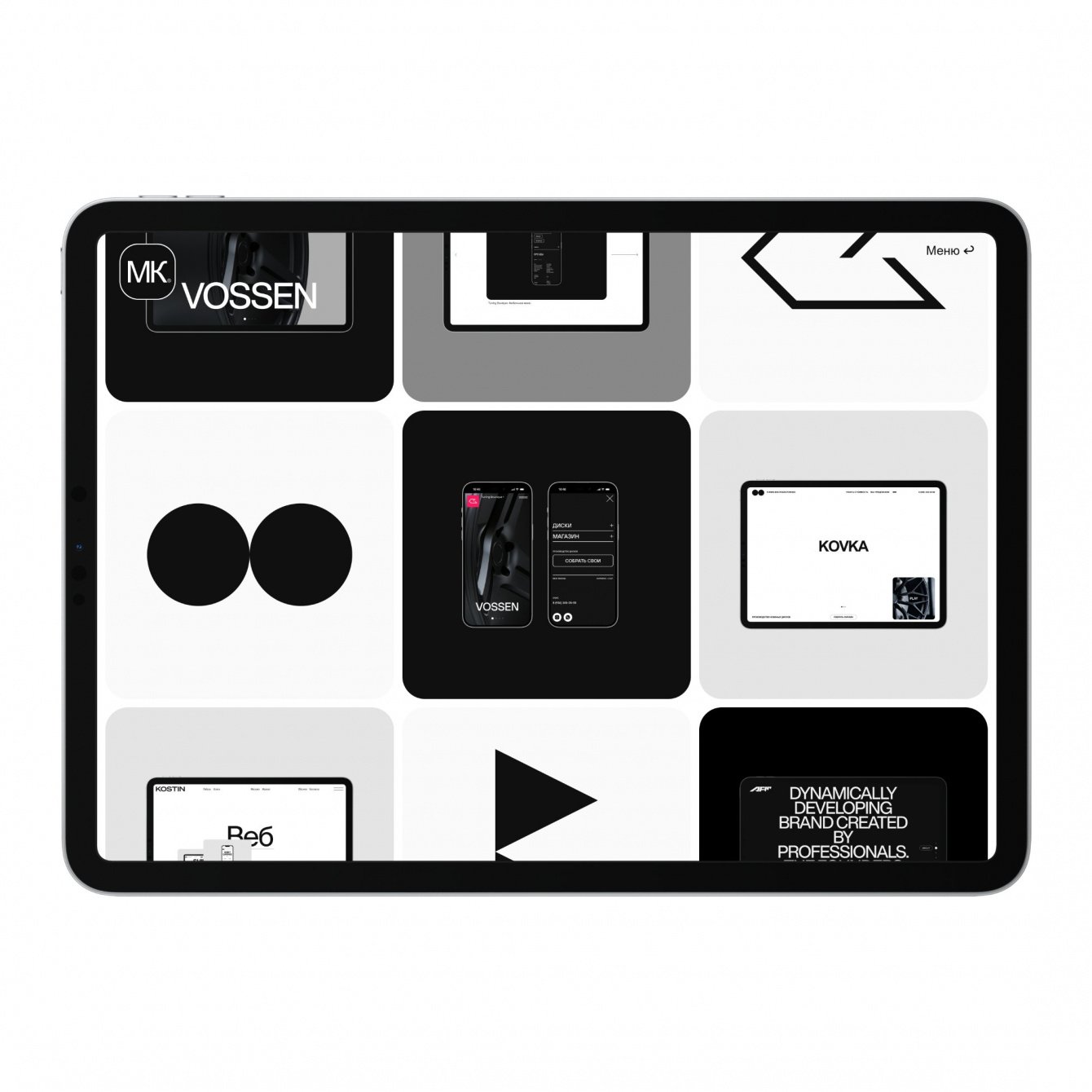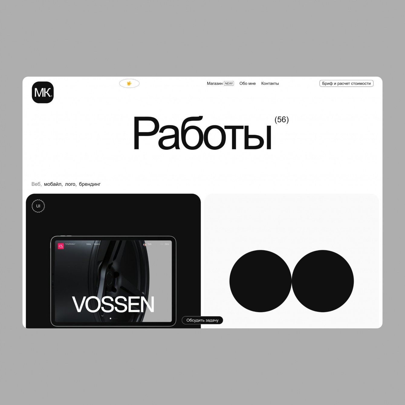 Сайт объединяет кейсы Behance и работы Dribbble в единое целое.