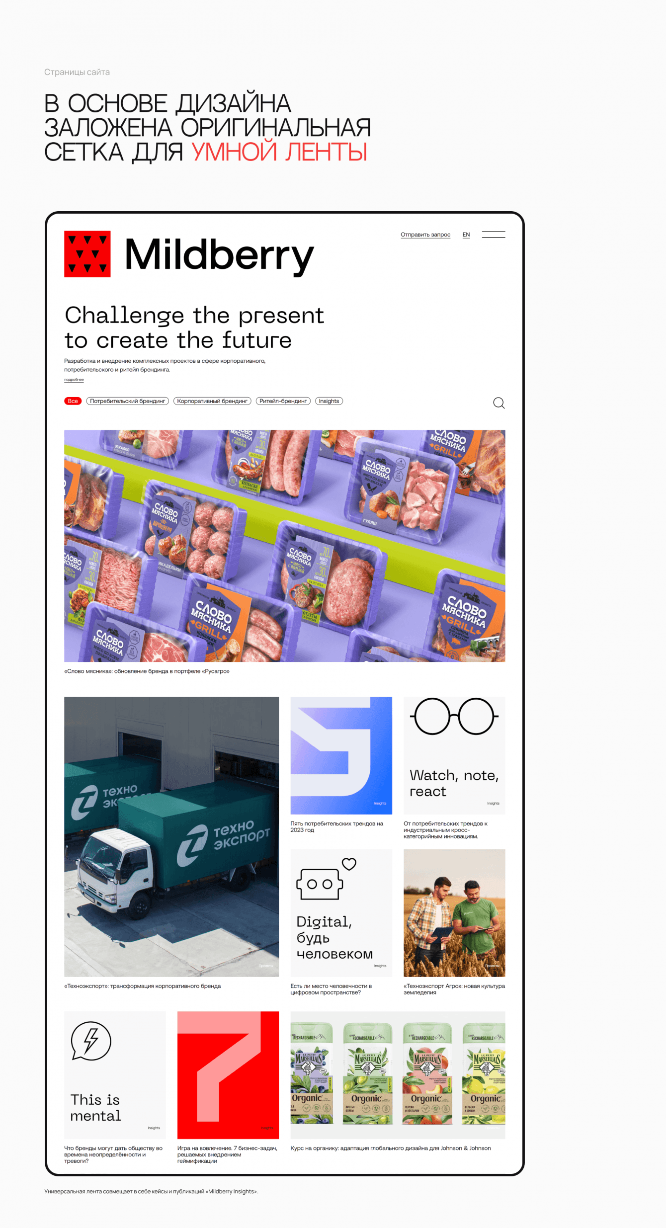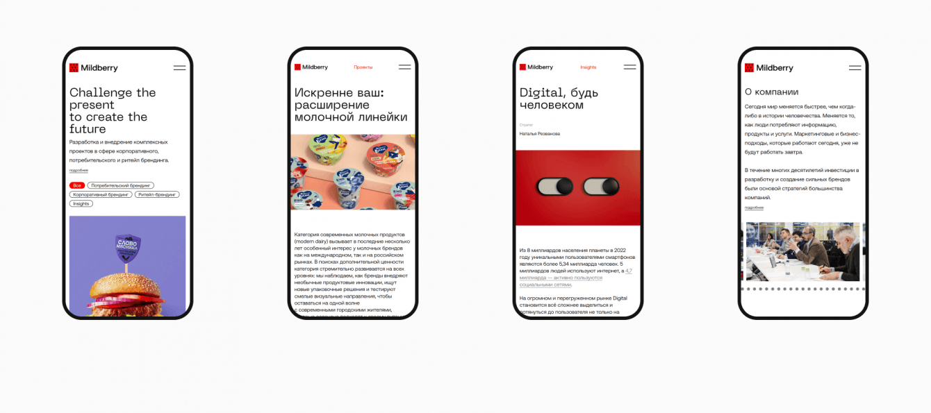 Компания Mildberry была создана в 1999 году как специализированное брендинговое агентство. Сегодня Mildberry предлагает свои услуги в России и по всему миру, а также активно инвестирует в развитие уникальных экспертиз, выходящих далеко за пределы традиционного брендинга.
