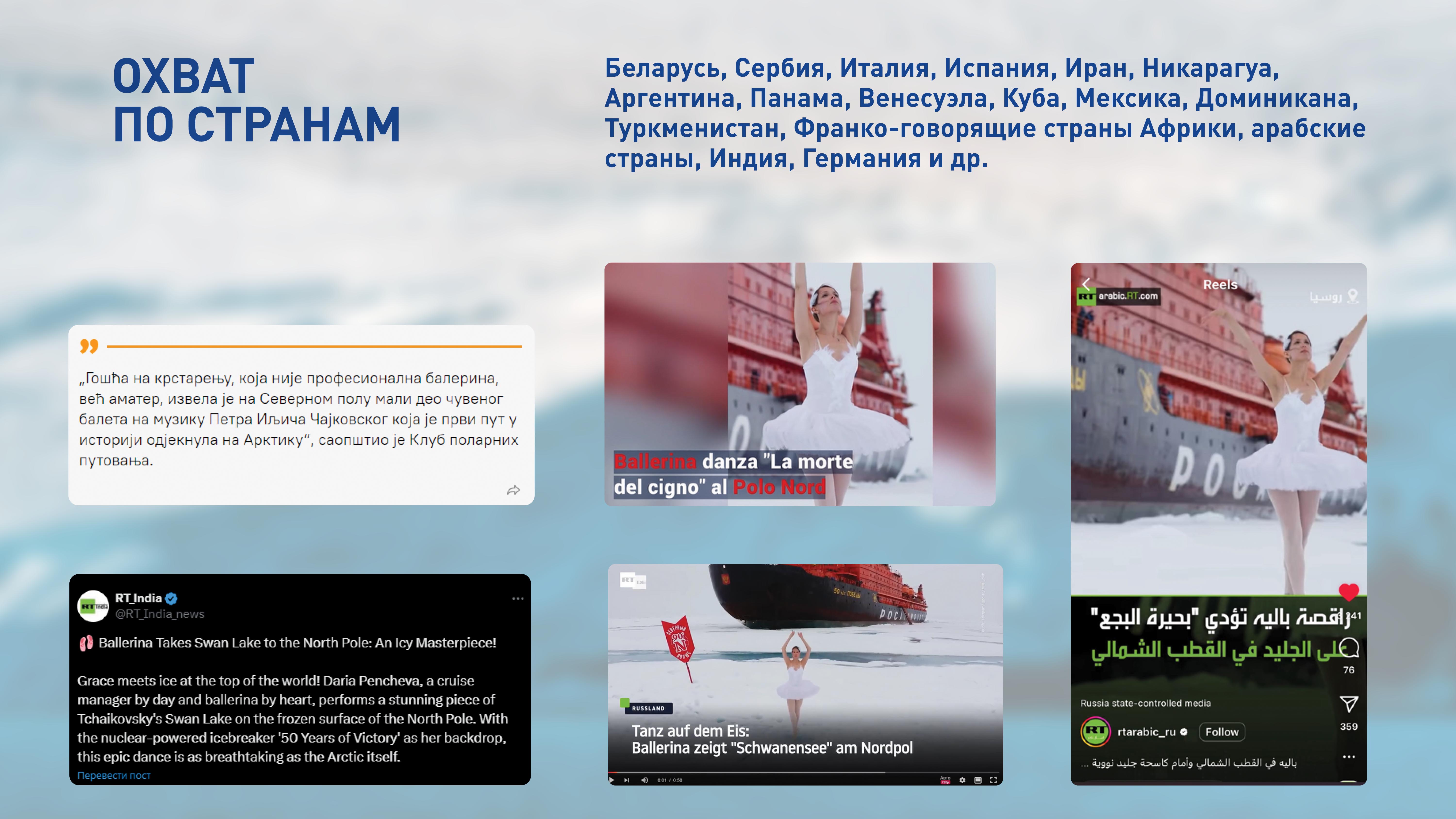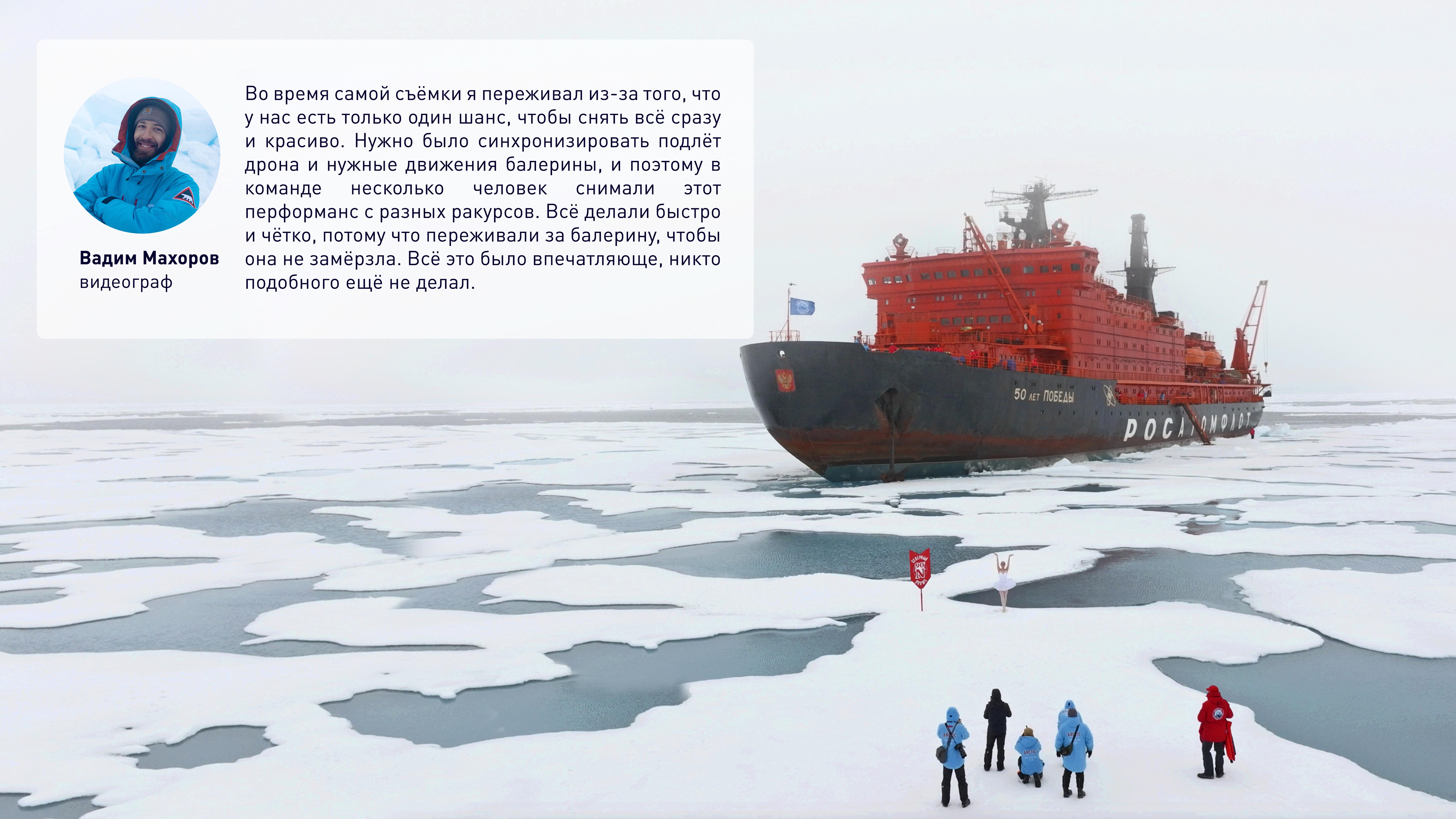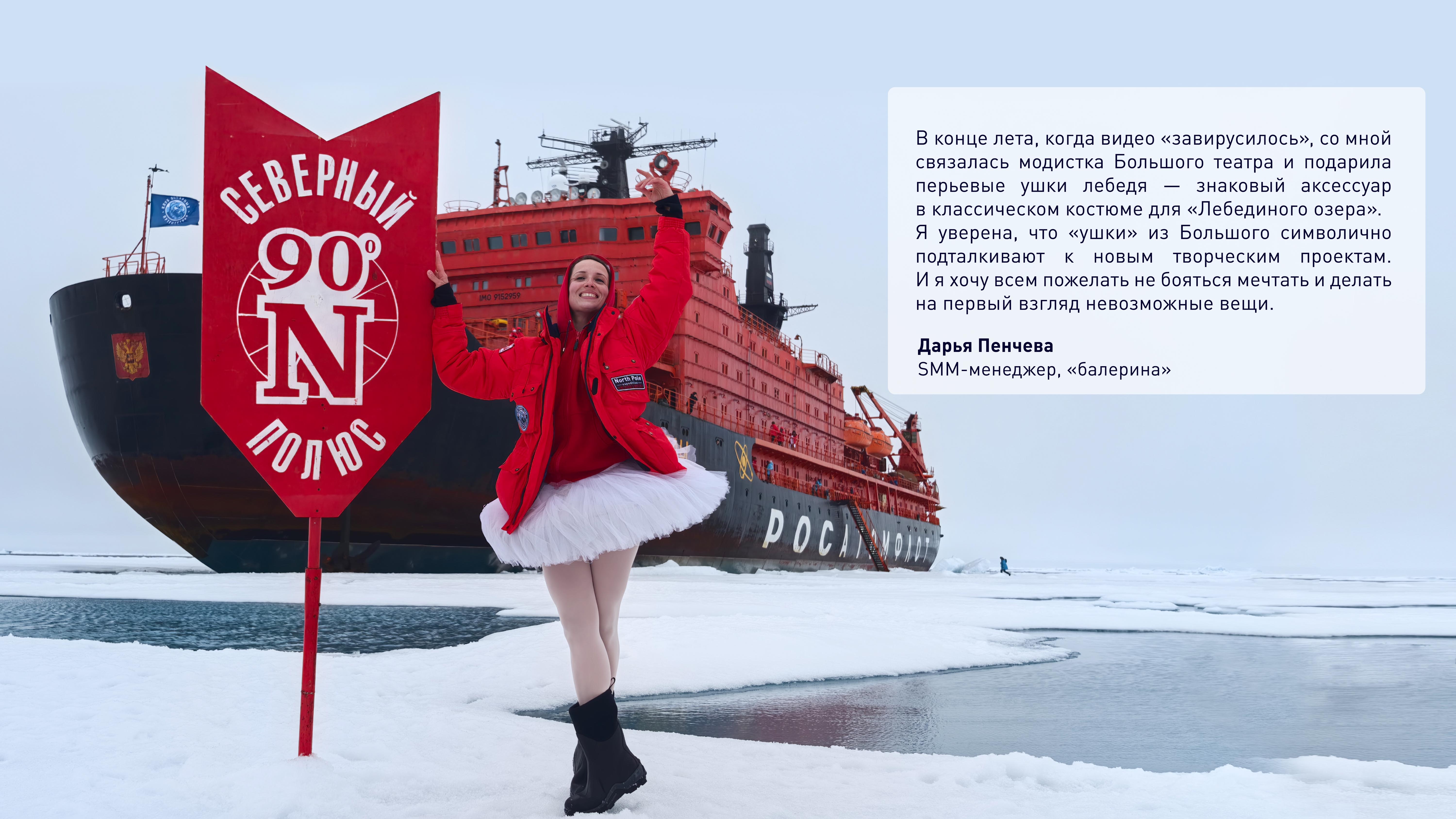 Уже на этапе проработки был "холодный расчёт", что комбо "танец на льду на фоне ледокола" должно сработать на более широкую аудиторию, чем только любители необычных путешествий. Ценители эстетики обратят внимание на визуал, скептики скажут "ну и зачем это всё", кого-то наполнит гордость за национальные символы, а профессионалы от балета точно найдут, что можно покритиковать. Повод высказаться и поделиться найдётся у многих.