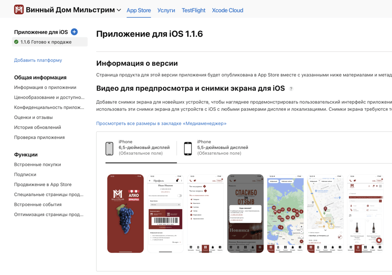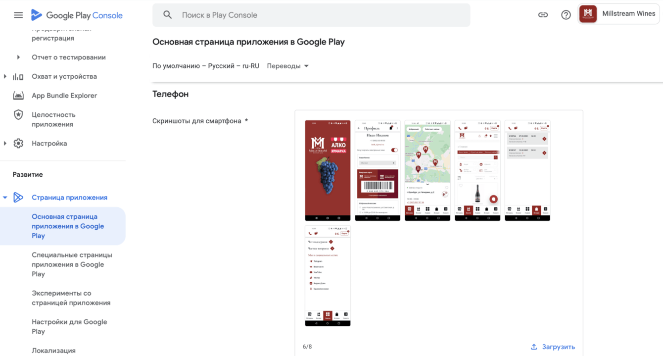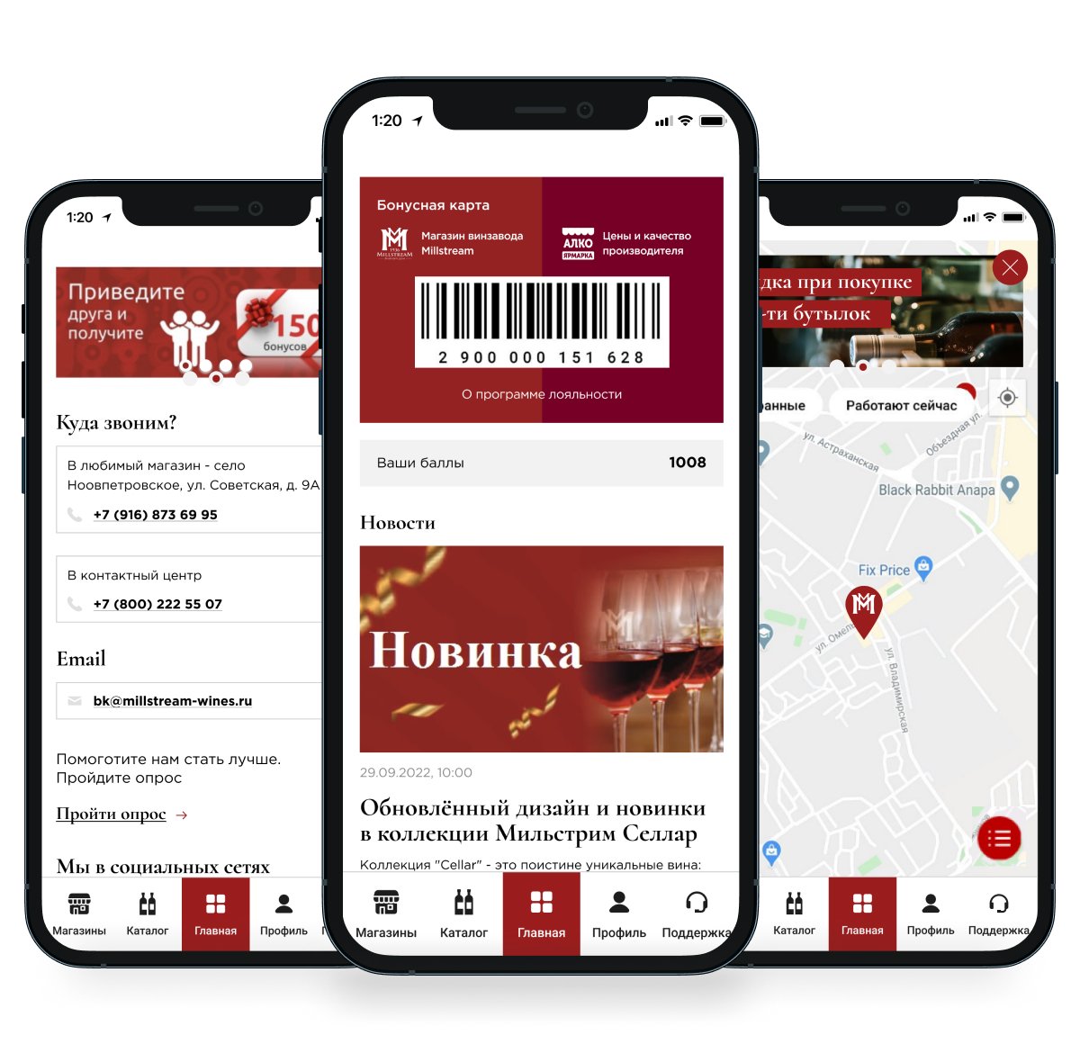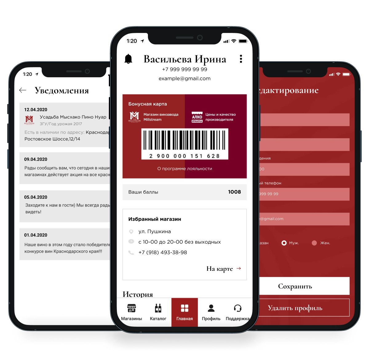 Разработка фирменного приложения системы лояльности винного завода Millstream.