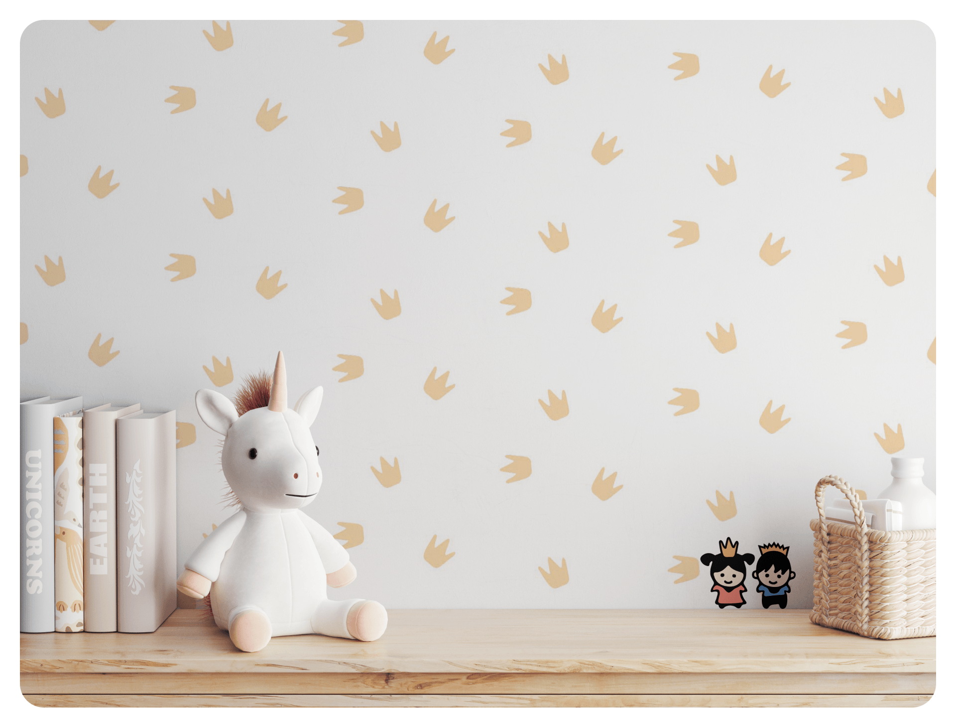 Паттерн: Разработан паттерн с изображением корон, который используется в различных элементах дизайна, напоминая детям о их королевском статусе.