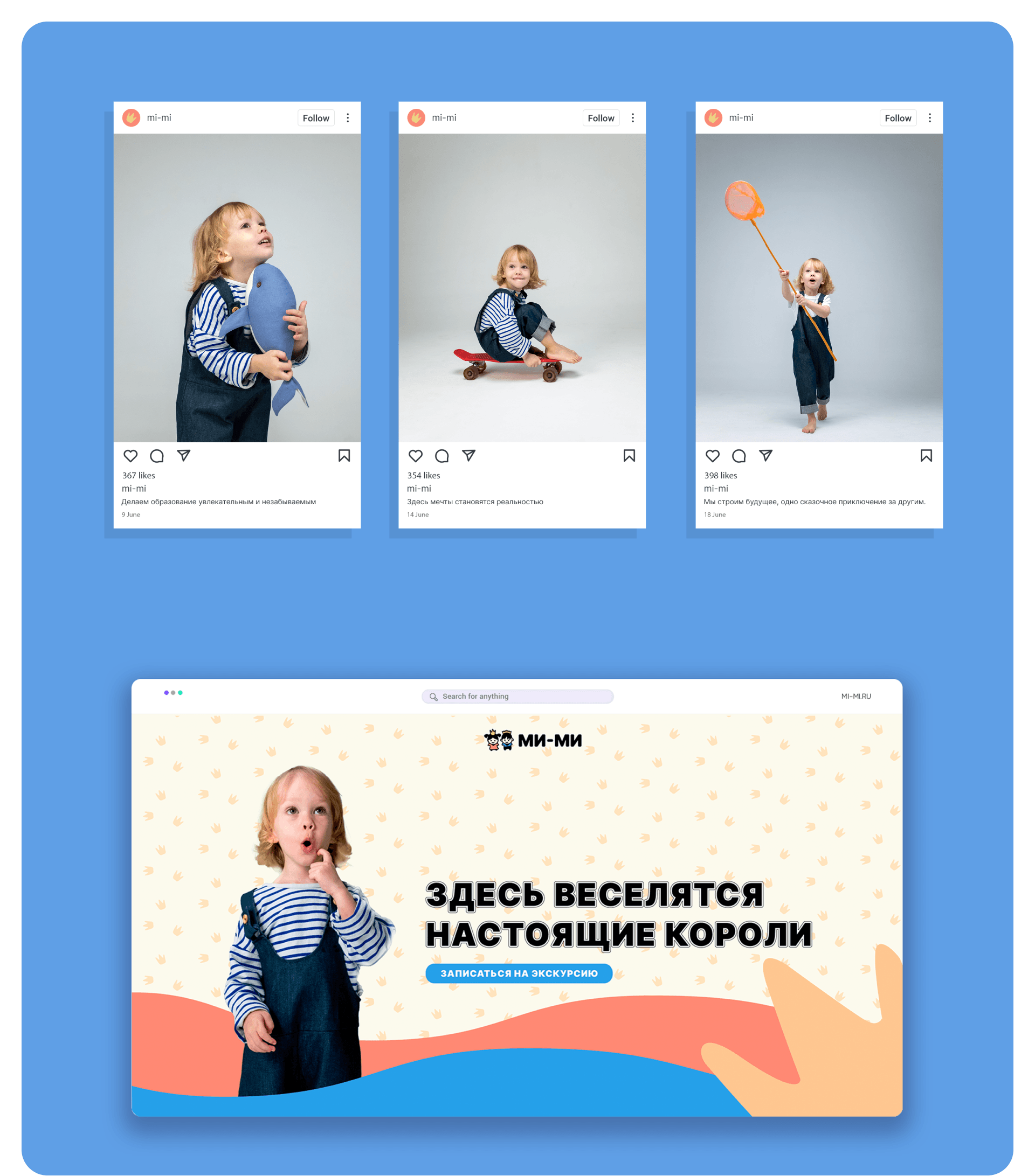 Ми-Ми это бренд детского садика. Концепция основана на идее, что каждый ребенок заслуживает особенного отношения и внимания. В детском саду не просто ухаживают за детьми, но также развивают их как индивидуальности, придавая им статус маленьких королей и королев.