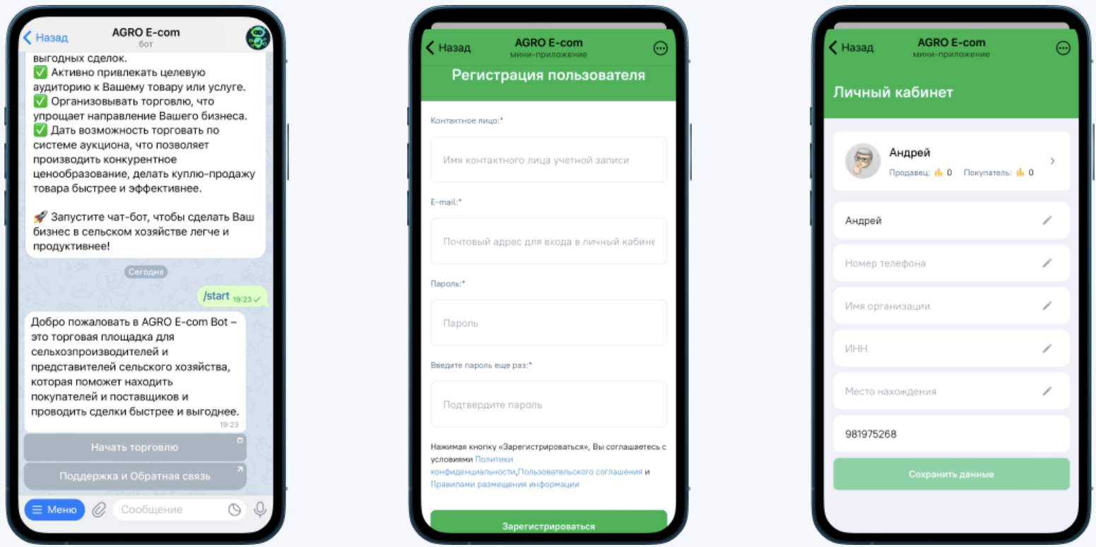 К нам обратился клиент с задачей создания мини-приложения для автоматизации процесса купли-продажи аграрной продукции. Приложение предназначено для фермеров, агрокомпаний и закупщиков, позволяя им легко находить нужные товары, участвовать в торгах и оформлять сделки напрямую через Telegram. В приложении реализована система аукционов, продаж по фиксированной цене, а также подписки для расширения функционала пользователей.