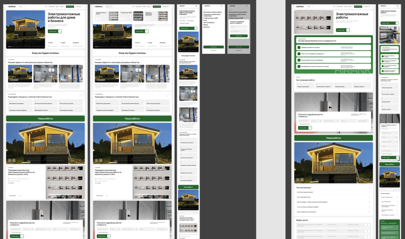 Провели детальное исследование рынка электромонтажных услуг, изучили сайты прямых конкурентов и лидеров отрасли, собрали пул лучших референсов. На основе полученных данных сформировали оптимальную структуру будущего сайта и согласовали с клиентом общее визуальное направление.