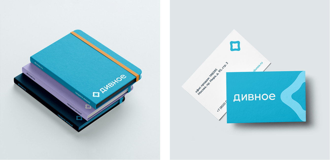 Фирменный ярко-голубой остался главным акцентом, потому что это одна из ключевых примет «Дивного». Но теперь у него появилась команда поддержки: тёмный синий для уверенной читаемости и дополнительные оттенки, которые дают вариативность и воздух в рекламных сценариях. В итоге бренд может звучать по-разному, не теряя своего голоса.