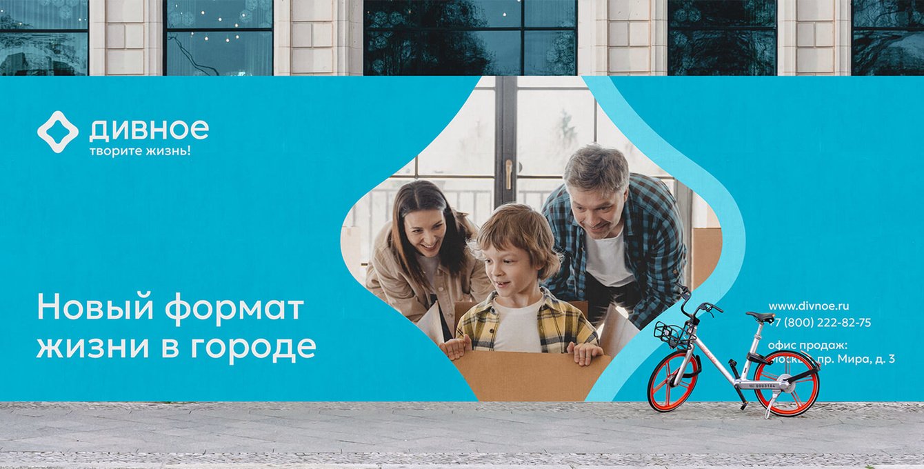Первую айдентику «Дивного» мы делали в 2018 году, для старта первой очереди. Бренд прижился, стал узнаваемым, его запомнили и полюбили. Но к запуску следующей очереди выяснилось, что стилю пора повзрослеть. Где-то он стал сложным в работе, где-то начал хуже читаться на скорости, а где-то просто устал за годы активного использования. В общем, тот самый момент, когда бренд уже вырос, а одежда ещё из прошлой версии.