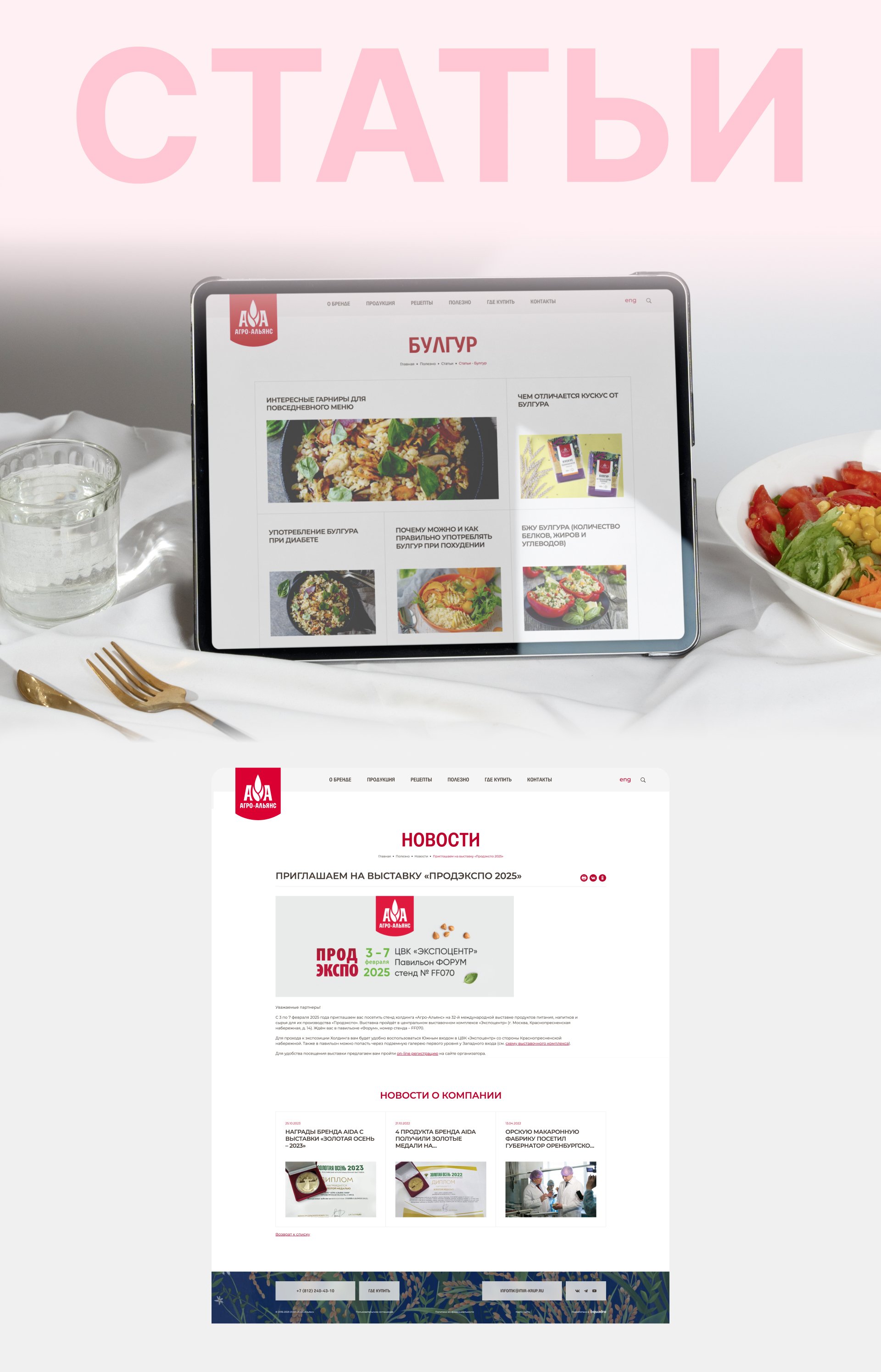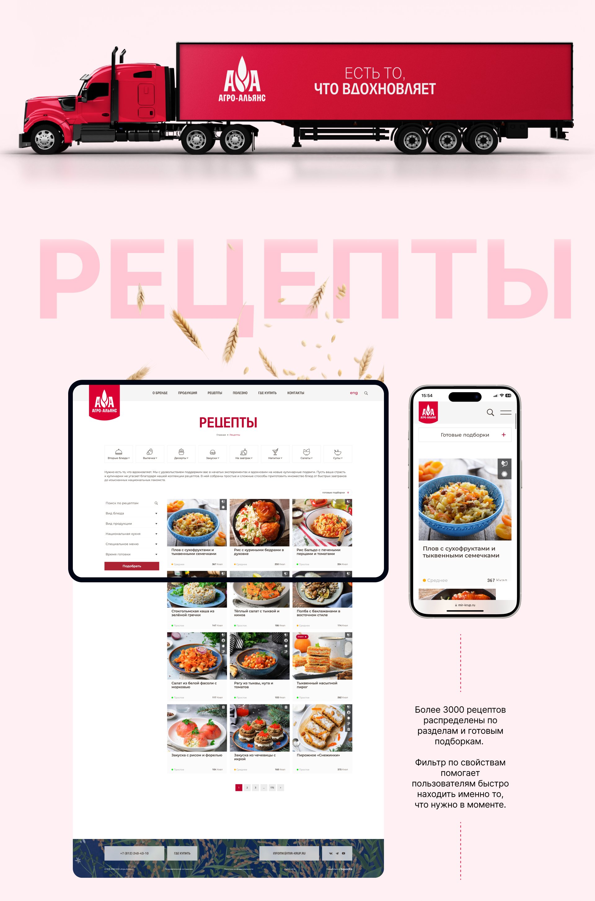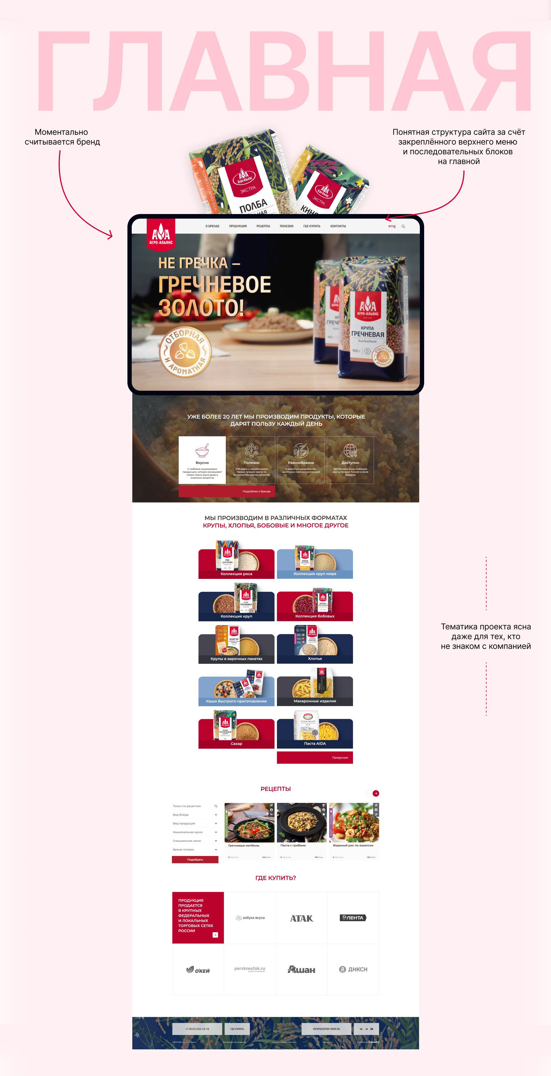 Бренд достаточно хорошо прокачан как для b2b, так и для b2c аудитории. На повышение узнаваемости и лояльности розничных покупателей у компании уже много лет работает сайт «Мир круп». Там размещен большой каталог рецептов, описание линеек продукции и seo-статьи.
