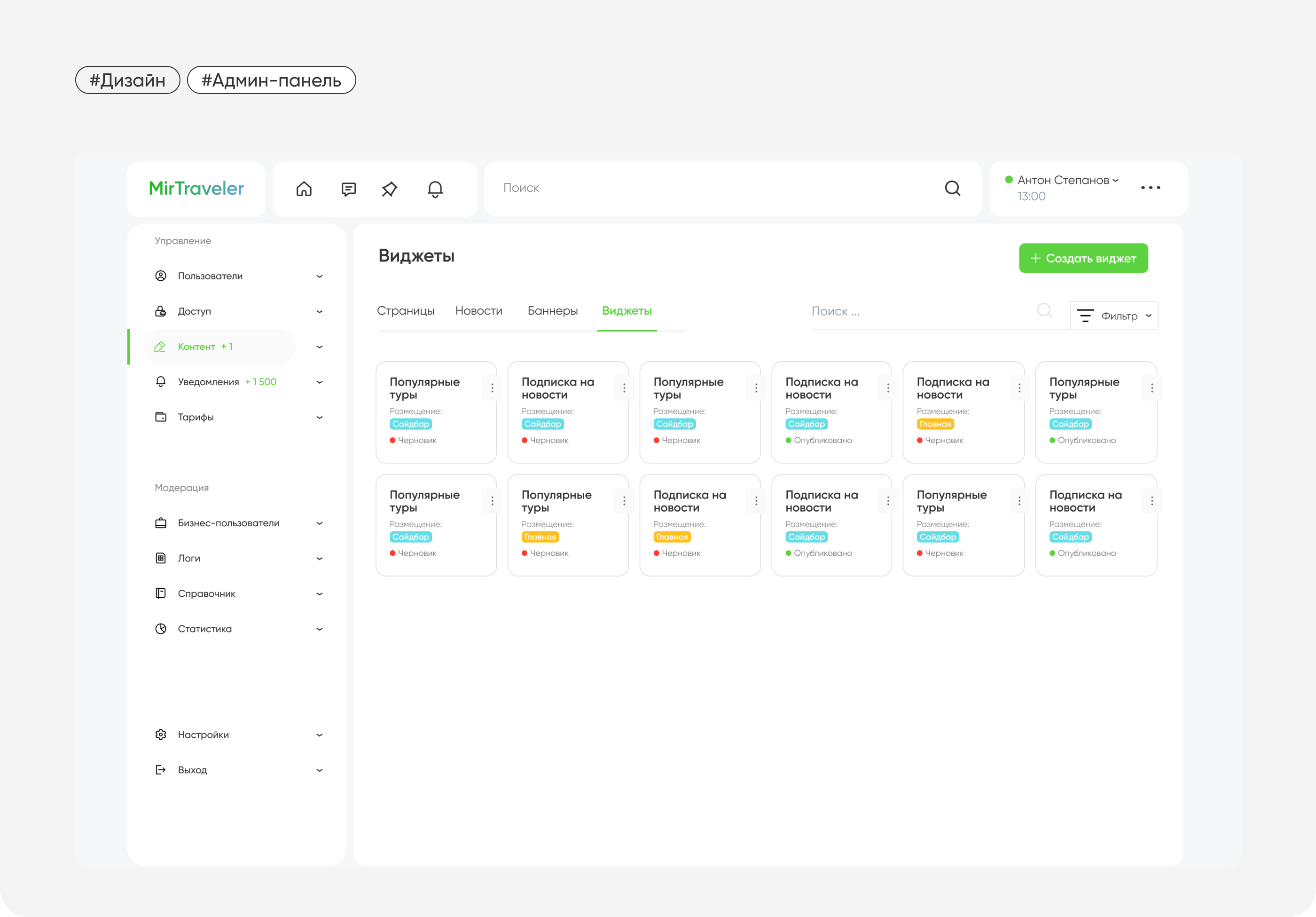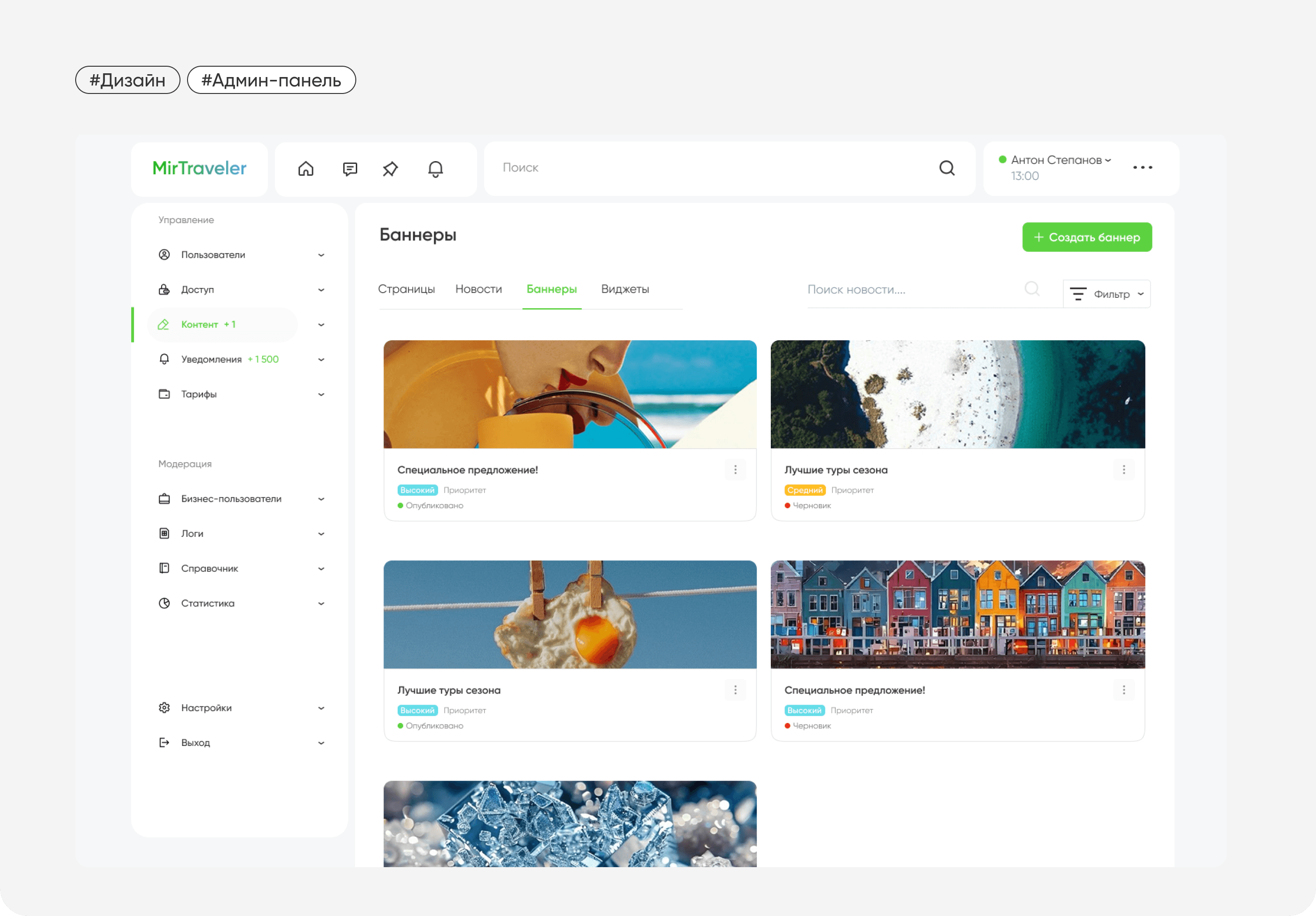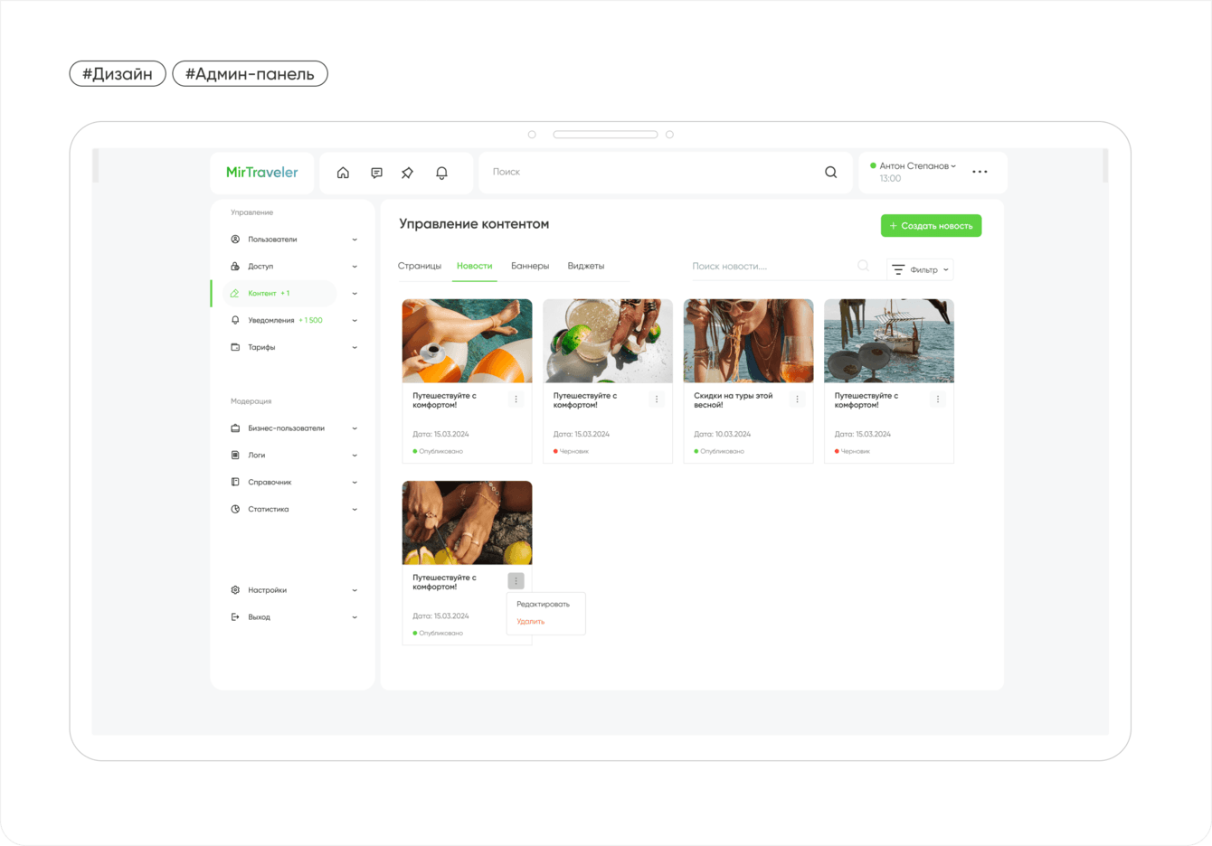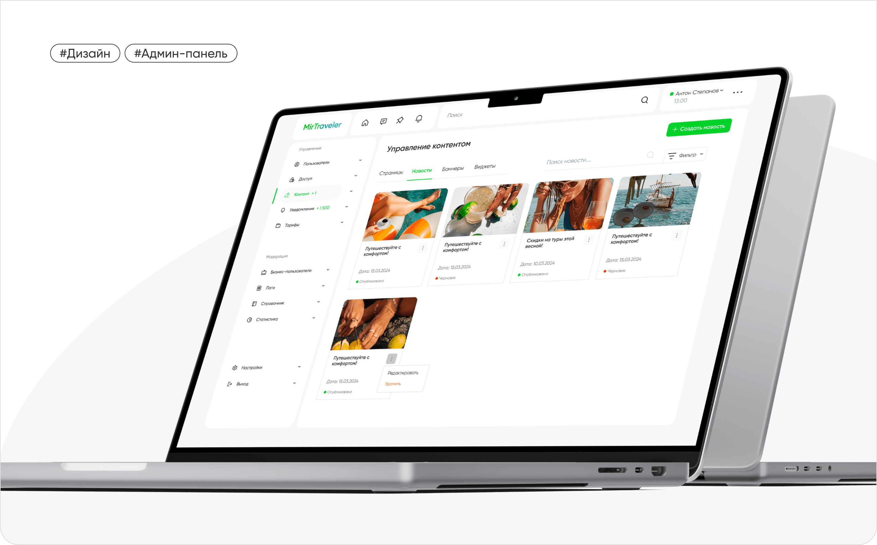 → Админ-панель: инструменты для управления контентом и пользователями.