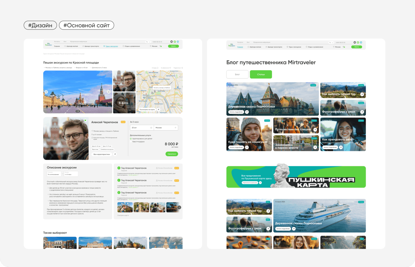 К нам обратился заказчик Mir Traveler с амбициозным проектом: разработка сайта-агрегатора для туристической сферы. Платформа должна предоставлять комплекс услуг — аренду жилья и автомобилей, туры и экскурсии, услуги гидов и другие развлечения для путешественников по России.