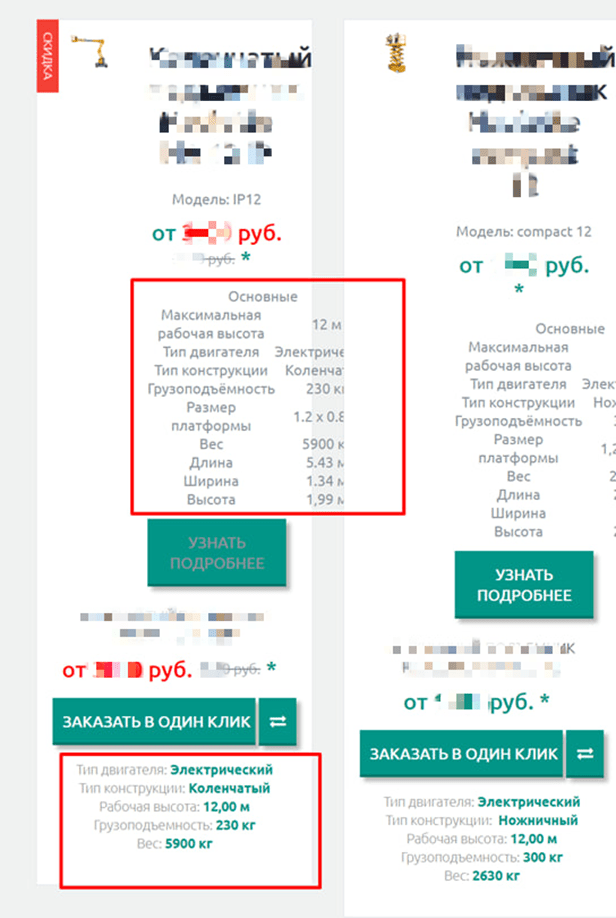 На главной странице в каждой карточке был скрытый блок. Если отключить стиль скрытия, то он выглядел, как таблица с данными по подъемникам. Согласовали с клиентом и полностью убрали из каждой карточки на главной странице дубль блока.