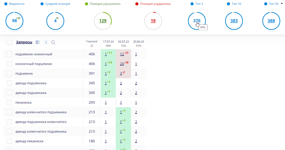 2. Средняя позиция 4, в ТОП-3 практически 100% всех запросов;