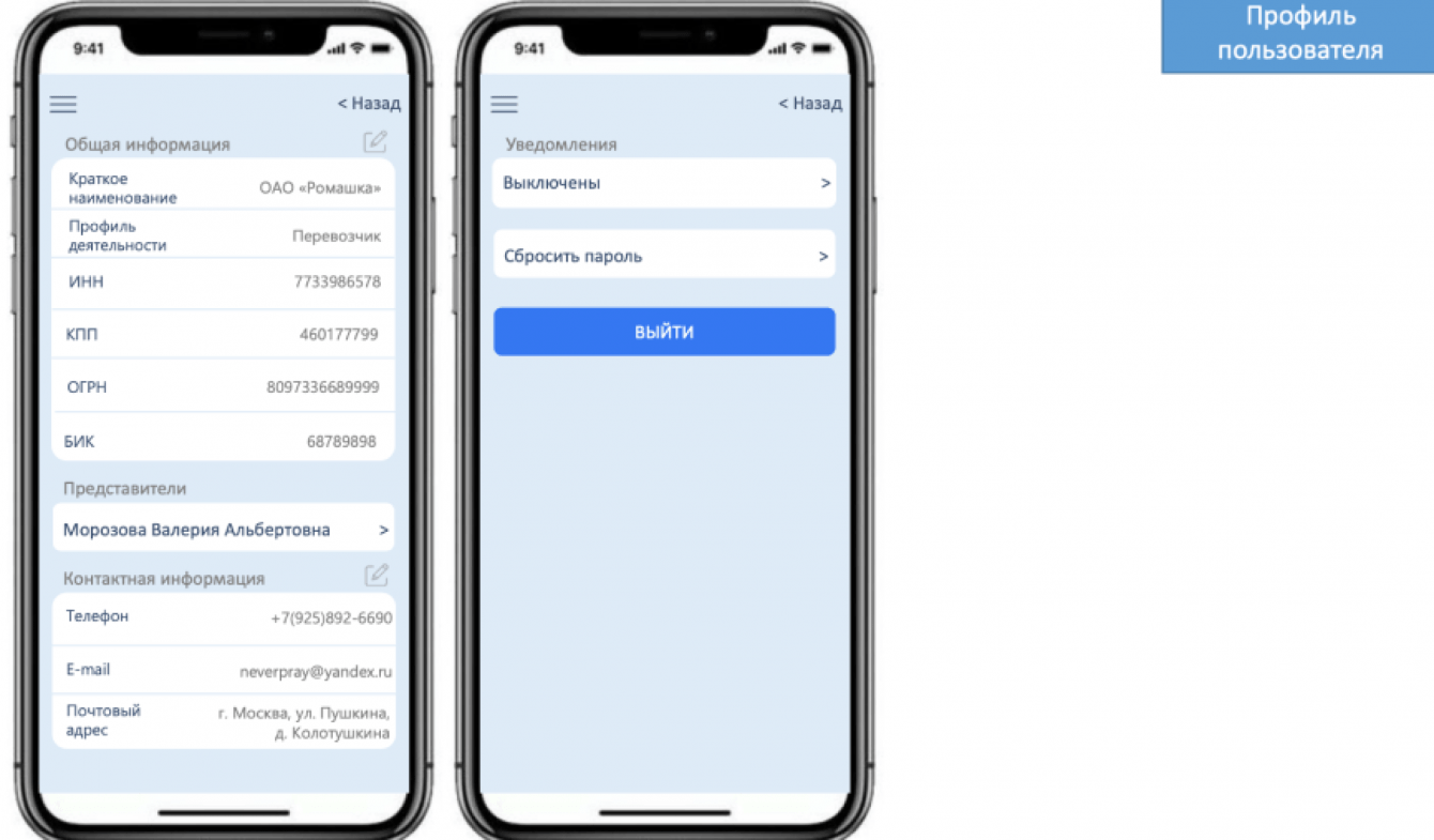 Мы добавили модуль профиля, где перевозчики и заказчики могут управлять информацией о себе и настройками уведомлений, а также добавлять представителей от компании.