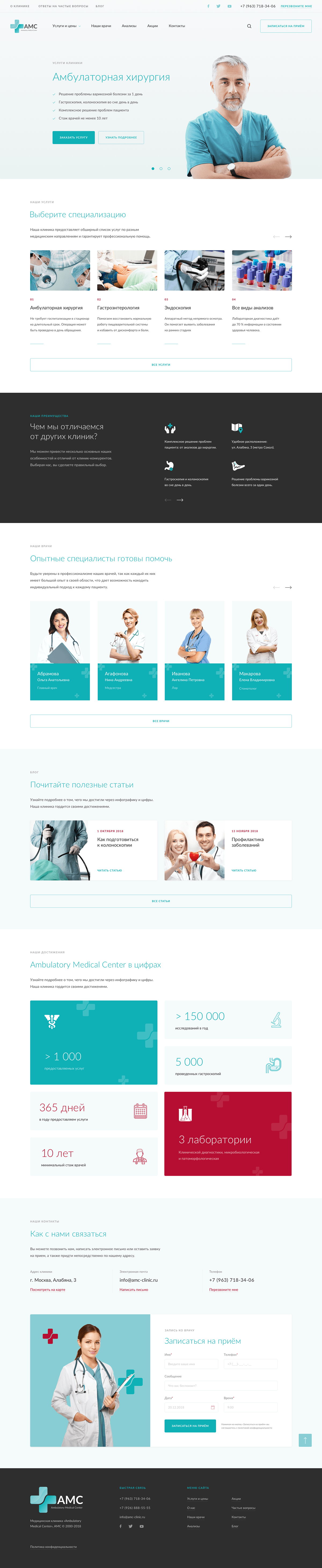 Ambulatory Medical Center (AMC) - специализированный медицинский центр, который предоставляет услуги в области хирургии, флебологии, гинекологии, отоларингологии и урологии. Нашей задачей была разработка фирменного сайта клиники, проведение seo-оптимизации.