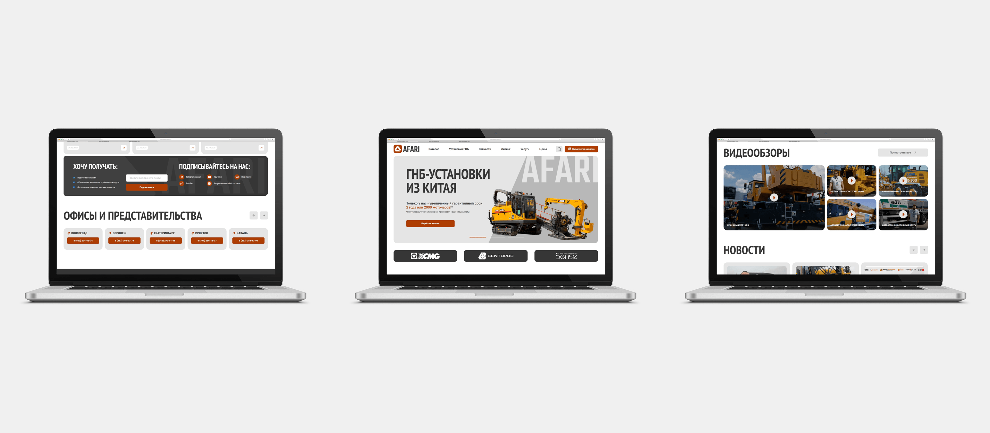 Основная цель — создать современный сайт, который покажет АФАРИ как крупного, надёжного партнёра в сфере спецтехники и ГНБ-оборудования.