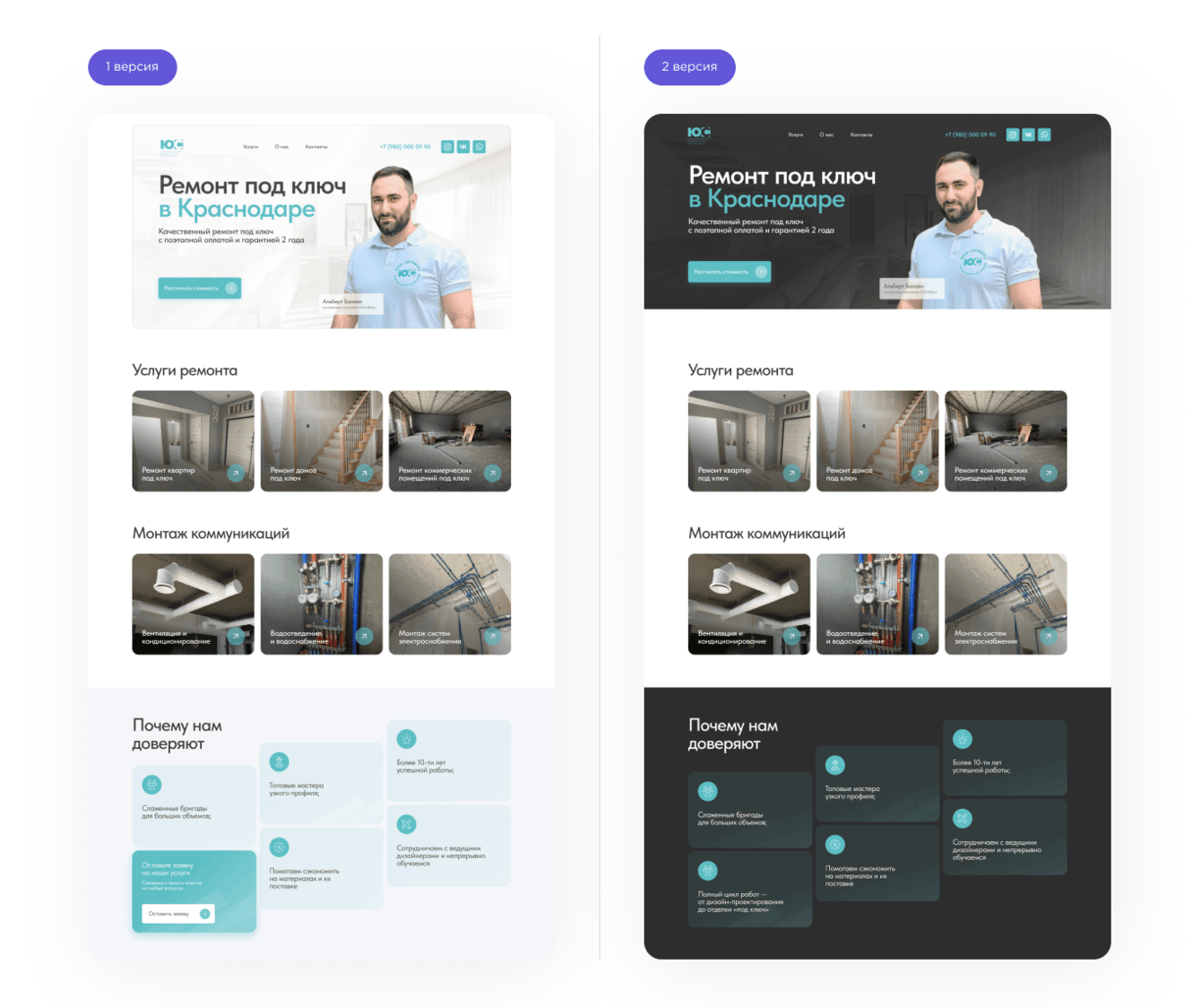 1 вариант дизайн-концепции был выполнен в светлых тонах. Для сравнения решили сделать макет и в темных оттенках.