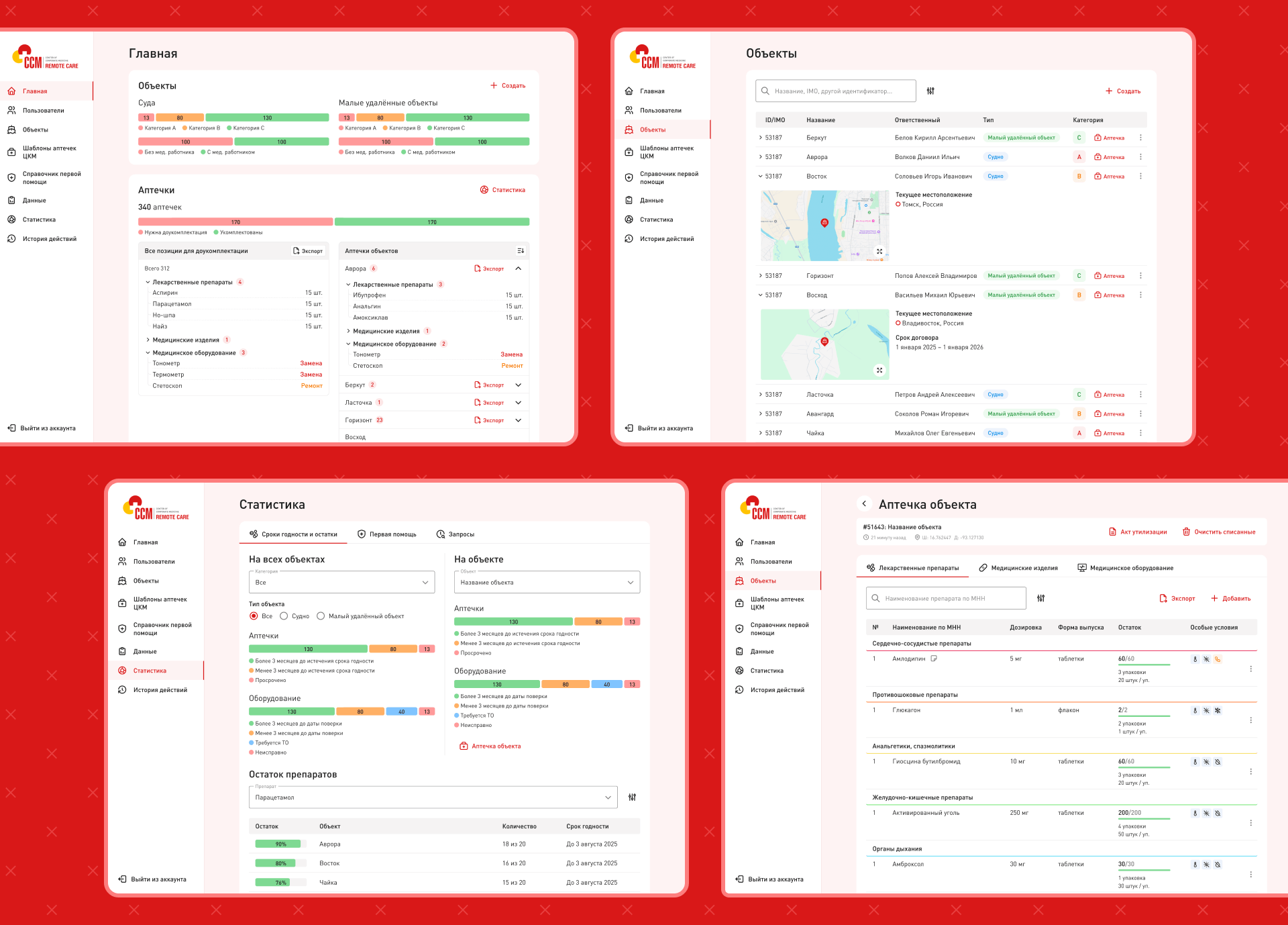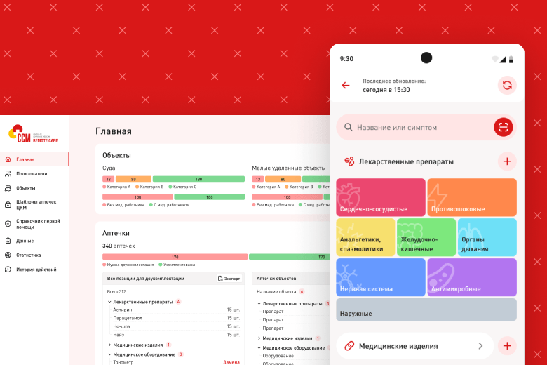 Статусы аптечек и оборудования доступны в единой панели; отчёты для закупки формируются за пару кликов.