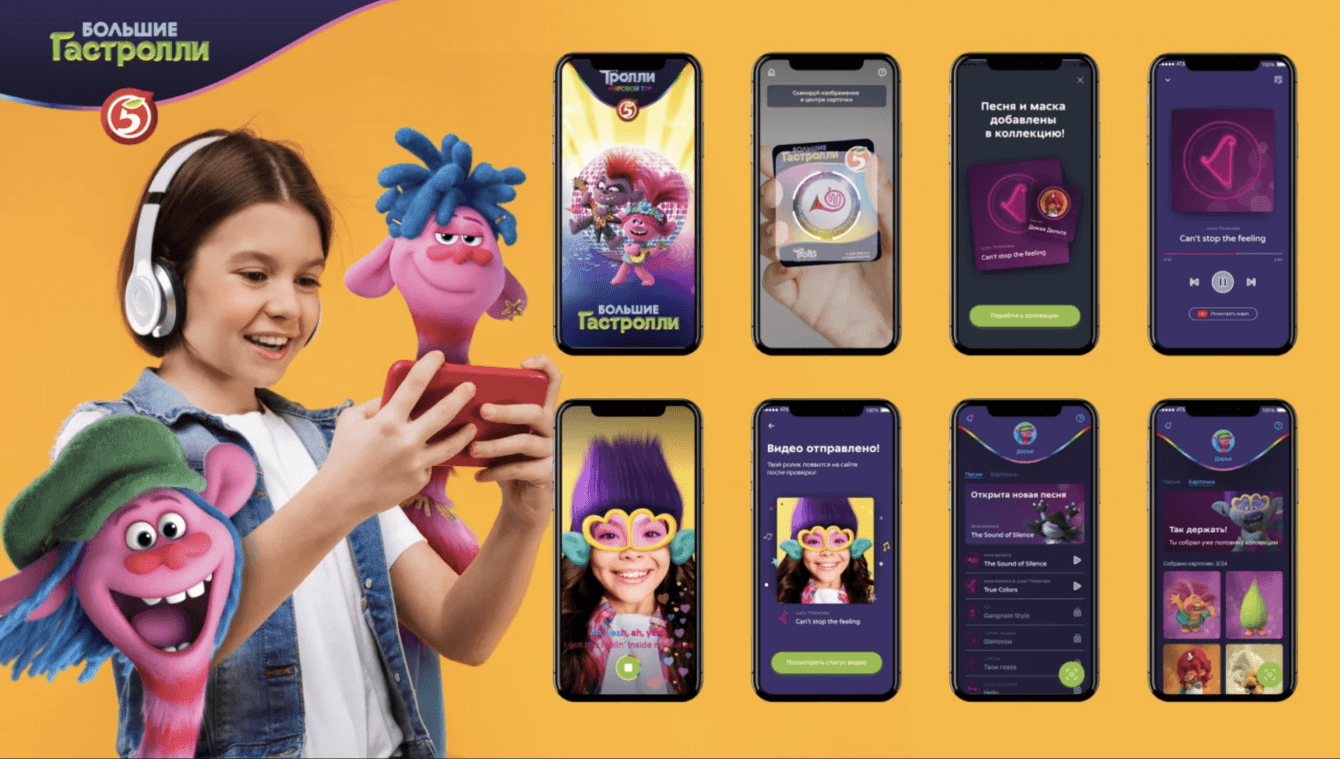Разработать комбинированную механику программы лояльности с уникальным интерактивным решением в дополнение к геймифицированной коллекционной модели федеральной маркетинговой акции «Большие Гастроли», приуроченной к выходу анимационного фильма «Тролли. Мировой тур».