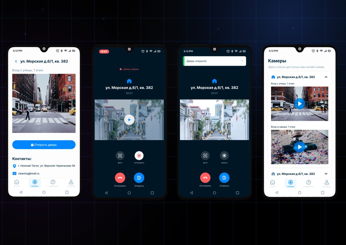 Через приложение жильцы принимают видеозвонки с домофона, видят гостя в реальном времени, дистанционно открывают дверь, просматривают онлайн-камеры и управляют услугами умного дома. Ключевая функция — стабильная передача видеопотока в условиях нестабильного интернета.