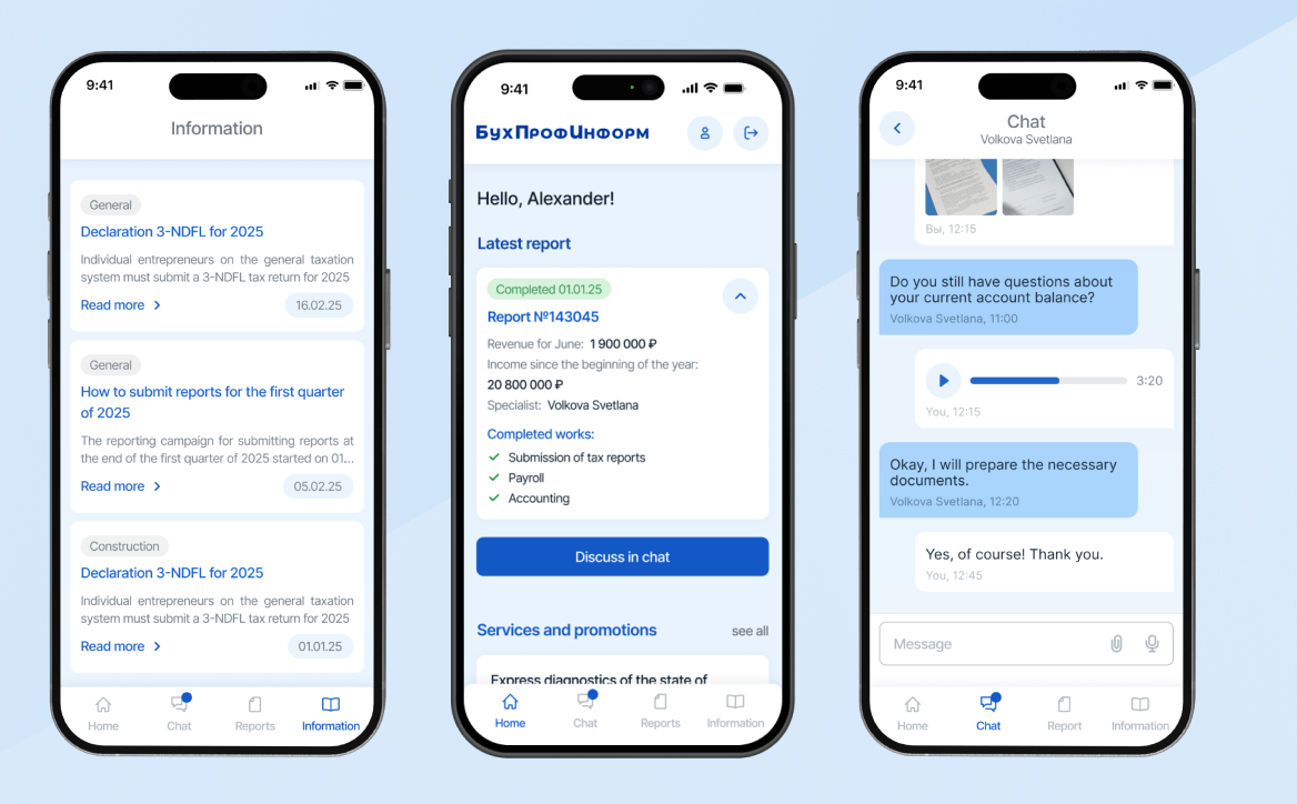 Было необходимо разработать приложение и удобную систему администрирования, чтобы перевести коммуникацию с клиентами из мессенджеров в специализированный удобный сервис. Клиент должен иметь возможность написать специалисту, а также хранить и иметь доступ к своим договорам, документам и т.д. в личном кабинете.