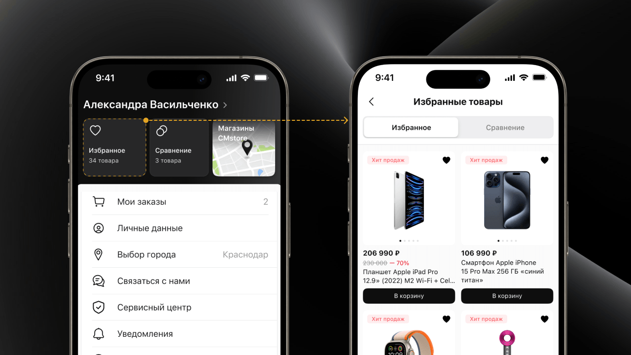 Мобильное приложение CMstore стало полноценным и удобным инструментом для пользователей, которые хотят быстро и комфортно заказывать технику. Благодаря логичной навигации, быстрому оформлению заказов, встроенной карте магазинов и геолокации, стало проще подбирать ближайшие точки самовывоза и следить за статусом покупки. Сравнение товаров, персонализированные рекомендации и динамическая корзина помогли улучшить пользовательский опыт и повысить вероятность совершения покупки.