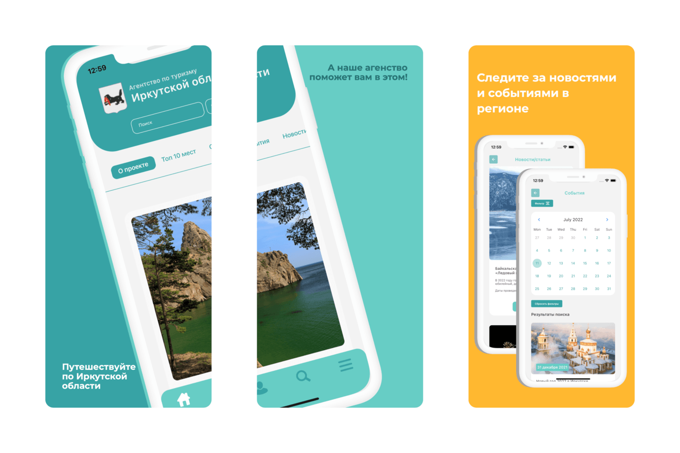 Задача: Разработка мобильного приложения под платформы iOS и Android для Агенства по туризму Иркутской области.