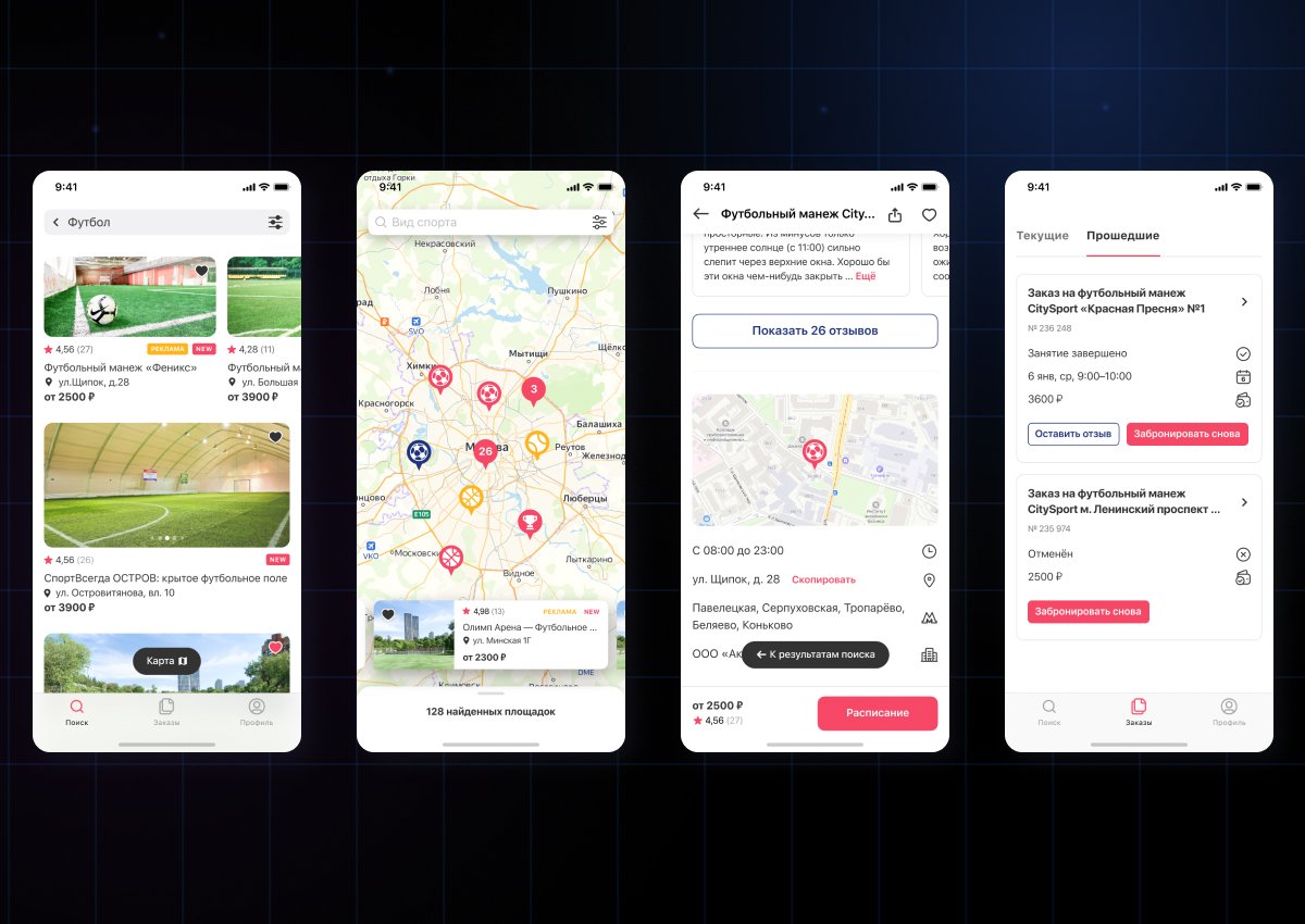 Мы разработали мобильное приложение FindSport для iOS и Android — удобный инструмент для спортсменов, тренеров и любителей активного отдыха. Аренда площадки занимает считанные минуты: от поиска до оплаты.