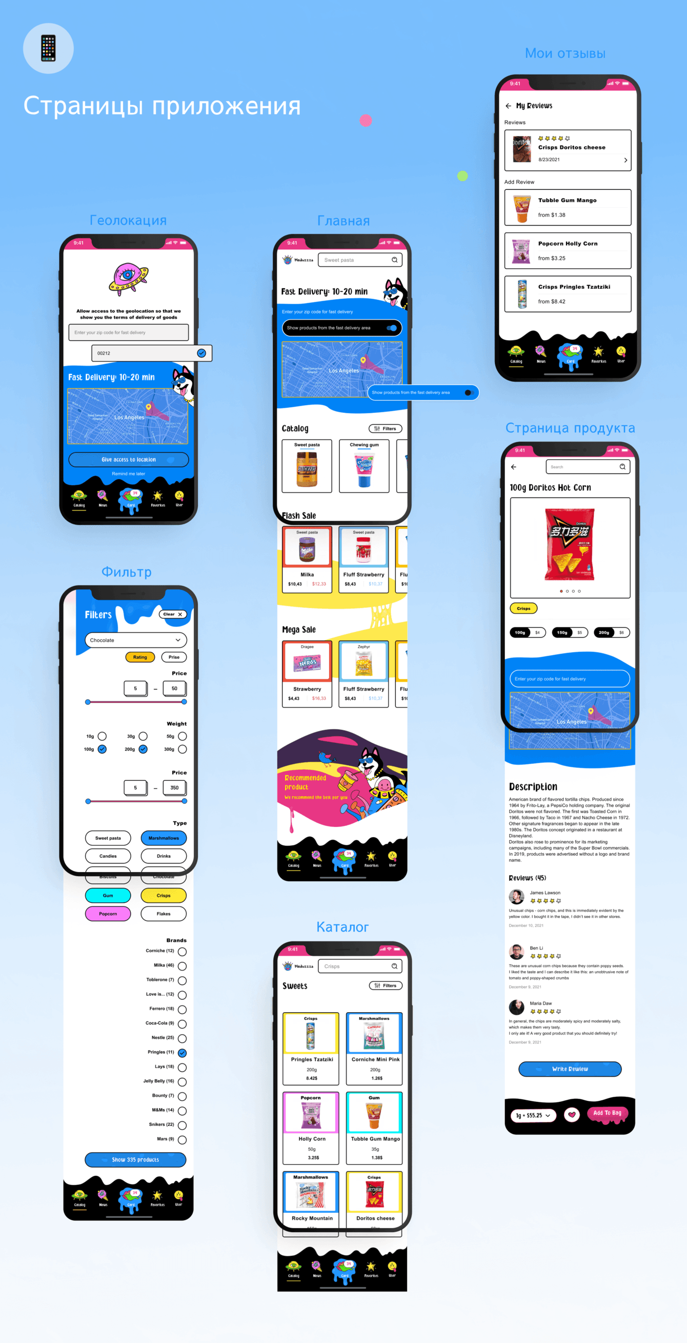 Компания обратилась к нам с запросом разработать мобильное приложение для доставки сладостей. Они хотели, чтобы приложение предоставляло широкий выбор сладостей и обеспечивало быструю доставку как на дом, так и в офис, на мероприятия (включая корпоративы, дни рождения и детские праздники).