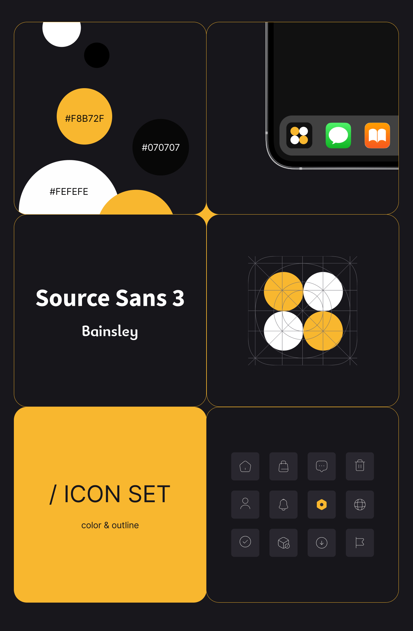 При разработке логотипа проводилась концептуализация, создание первых вариантов, отбор лучших идей, их доработка и финальное утверждение. Для дизайна приложения выбран шрифт Bainsley, а темная тема с желтыми акцентами создает стильный облик. Иконки приложения минималистичны с мягким округлением, что обеспечивает приятное визуальное восприятие и улучшает навигацию.