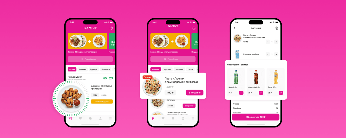 — Разработать с нуля мобильное приложение для региональной сети ресторанов «Gambit».