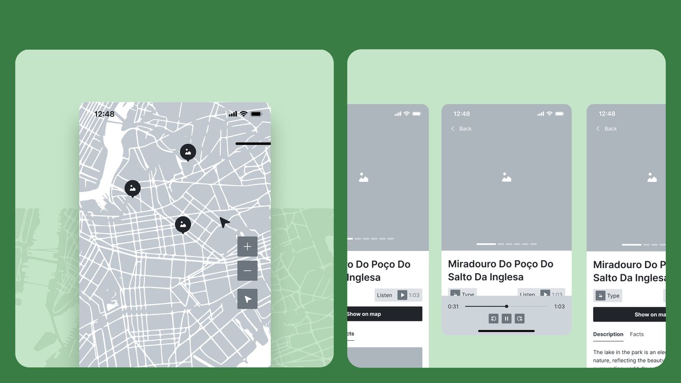 Это позволило определить ключевые задачи: быстрое ориентирование, поиск интересных объектов, навигация без отвлечения на экран. На основе собранных данных мы построили user flow, который лёг в основу будущего интерфейса — понятного, логичного и интуитивного для всех категорий пользователей.