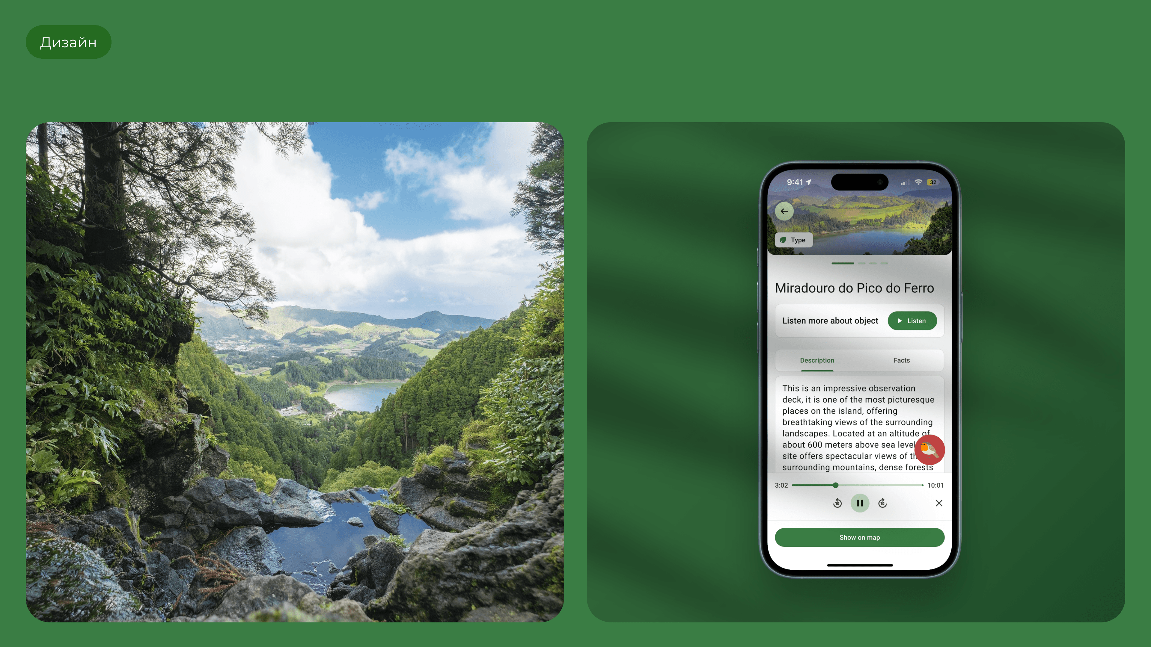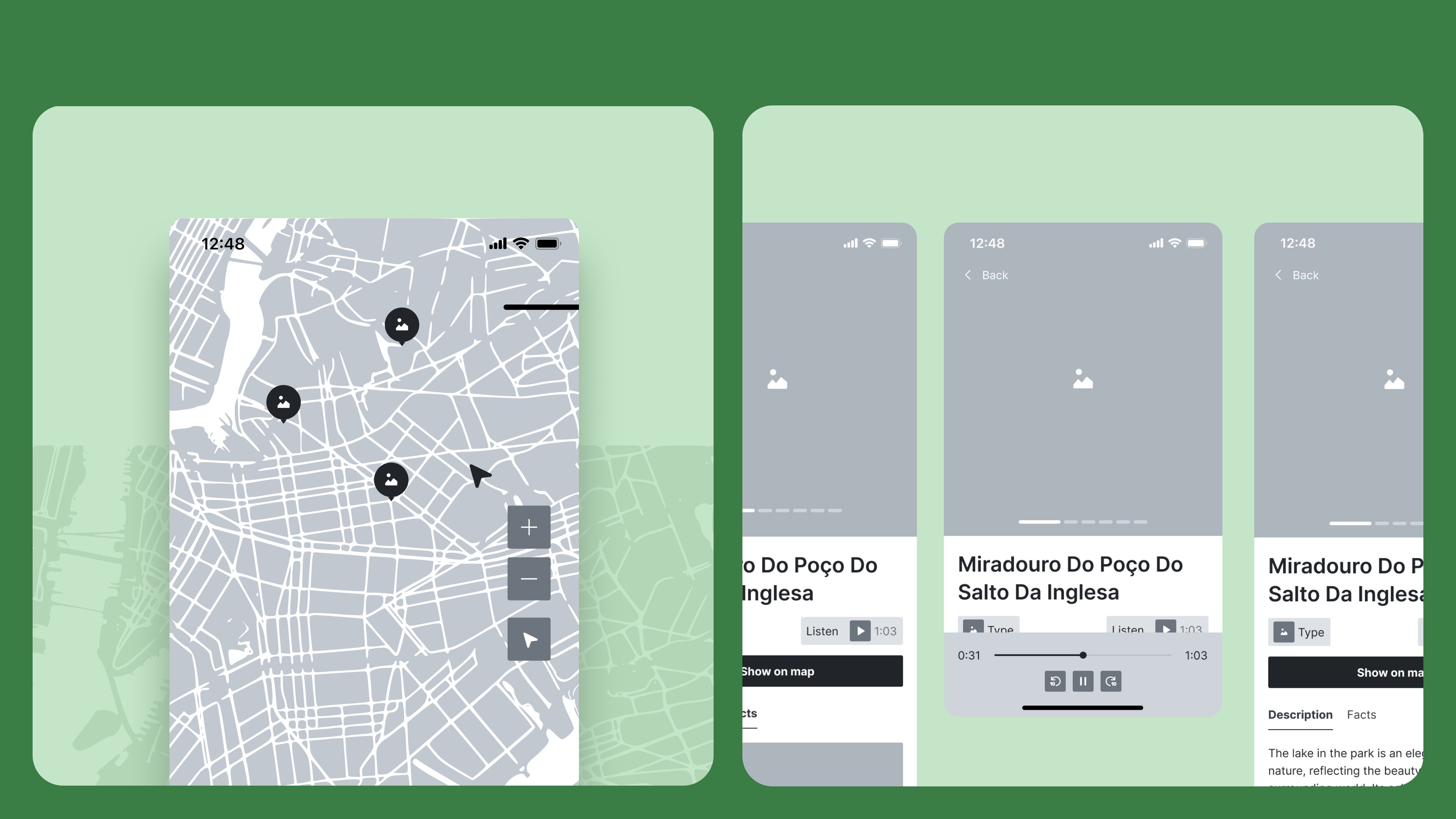 Это позволило определить ключевые задачи: быстрое ориентирование, поиск интересных объектов, навигация без отвлечения на экран. На основе собранных данных мы построили user flow, который лёг в основу будущего интерфейса — понятного, логичного и интуитивного для всех категорий пользователей.