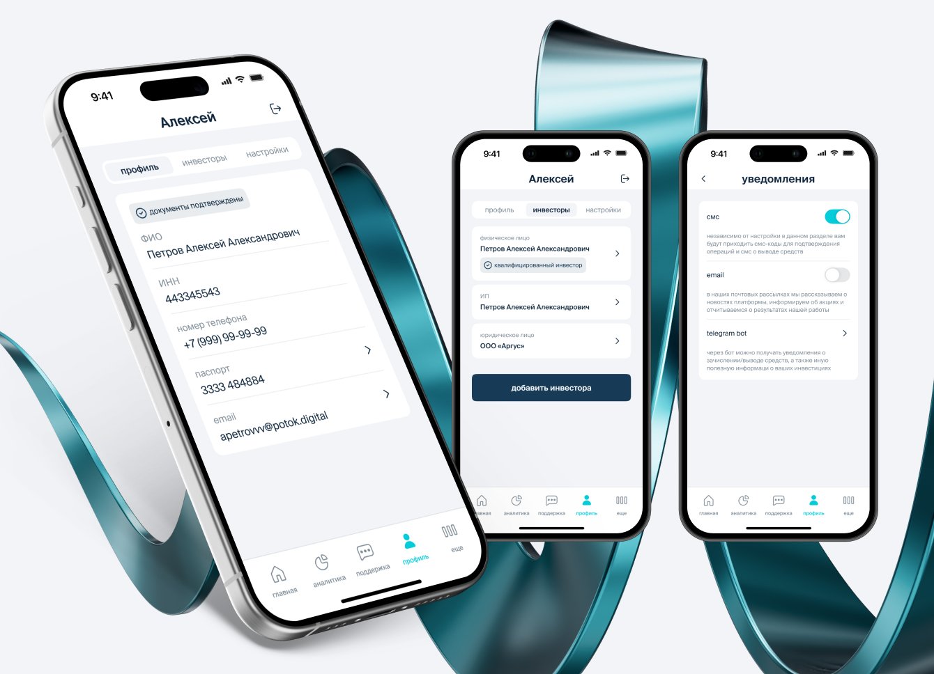 Разработать безопасное финтех-приложение. Чтобы пользователи могли открывать счета, анализировать результаты инвестиций, настраивать стратегию, пополнять и выводить средства, редактировать данные.