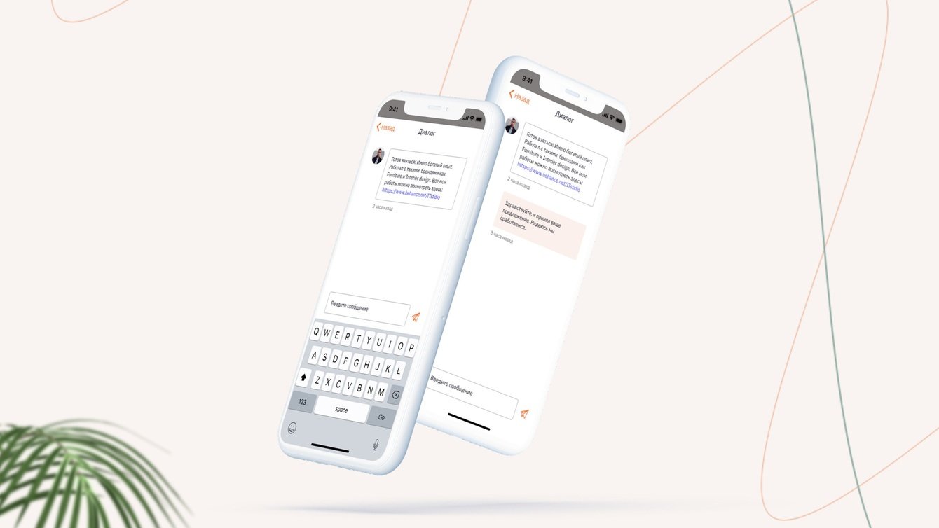 Заинтересованные дизайнеры откликаются на заявку, могут начать переписку с заказчиком. Клиент видит все отклики и диалоги под своей заявкой на дизайн проект, здесь же может выбрать исполнителем одного из откликнувшихся дизайнеров. Статус заявки автоматически сменится на «Исполнитель найден».