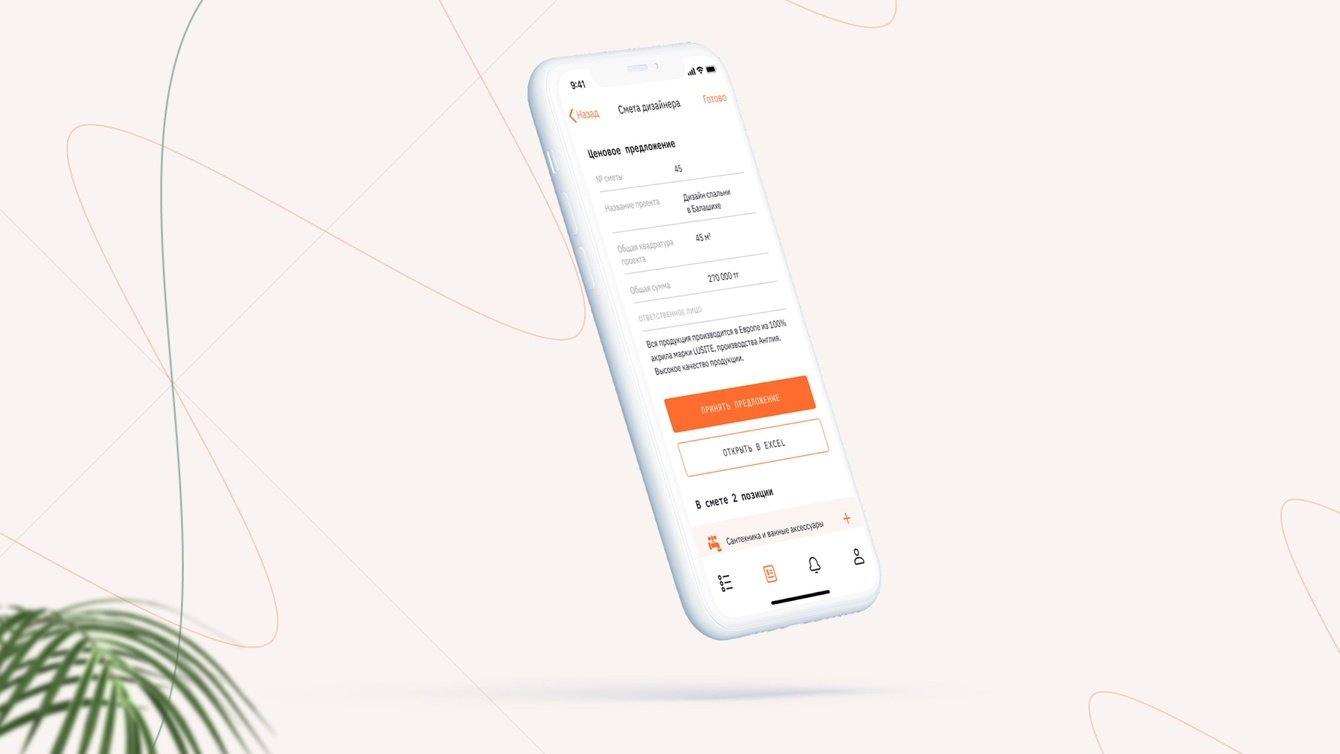 Смету формирует дизайнер в отношении заказчика. В смету входит описание проекта, список необходимых материалов с указанием характеристик и стоимости за единицу. Указанные категории автоматически суммируются. Саму смету в excel формате можно будет скачать с веб версии или с почтового адреса.