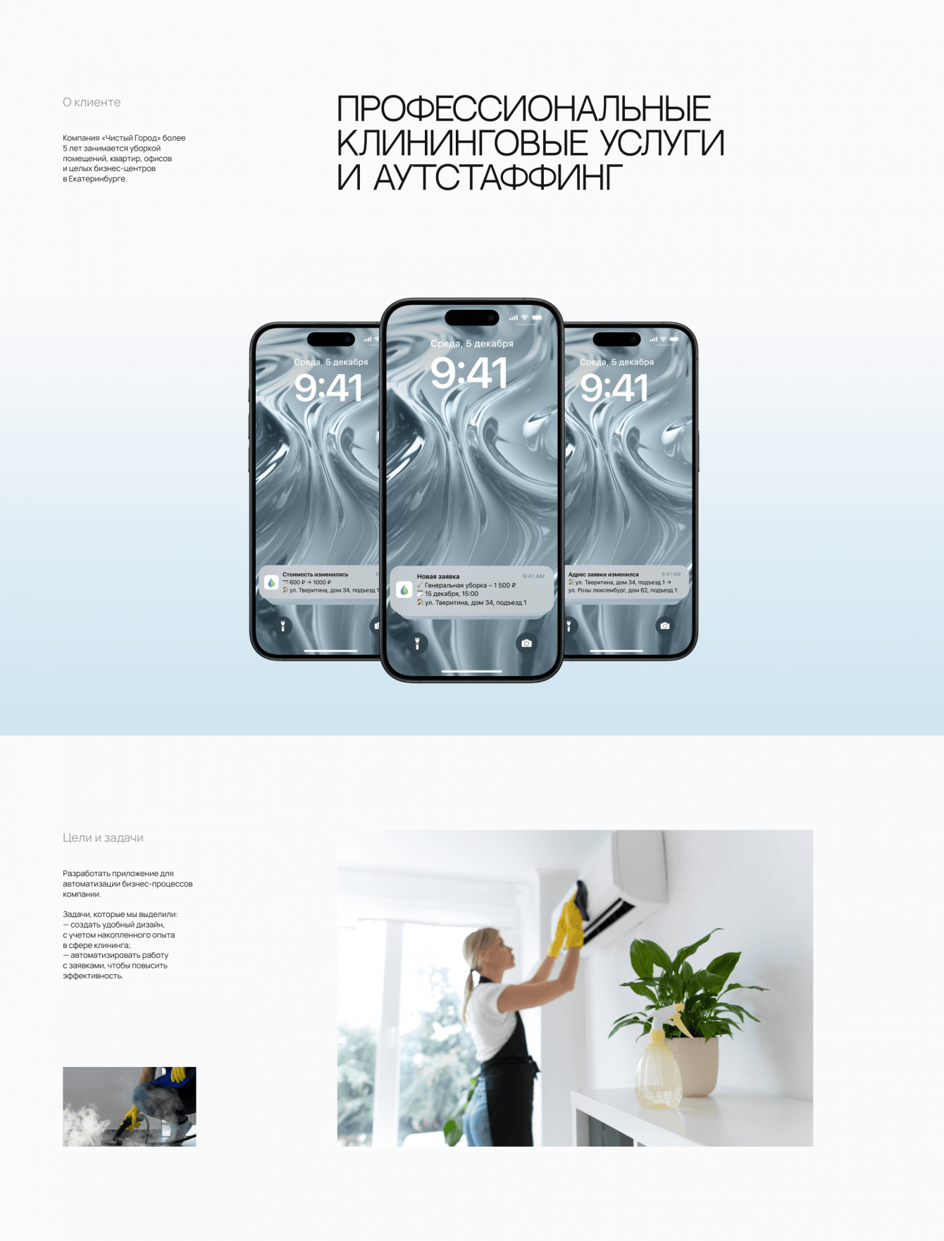— создать удобный дизайн, с учетом накопленного опыта в сфере клининга;