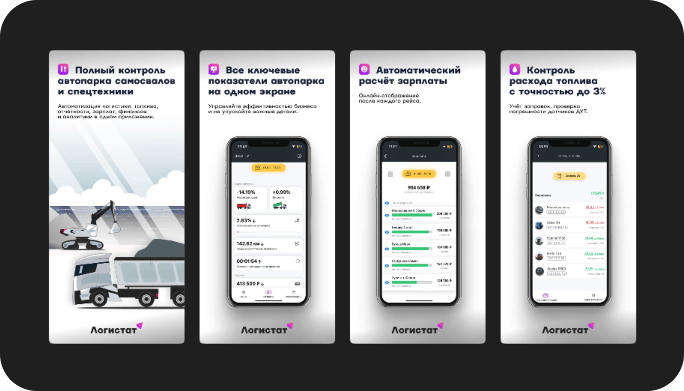 Компания «Логистат» с 12-летним опытом в транспортной логистике обратилась к нам для создания комплексного решения по управлению автопарками спецтехники. Приложение должно было объединить функции учета транспорта, контроля топлива, расчета зарплат и аналитики в единую систему.