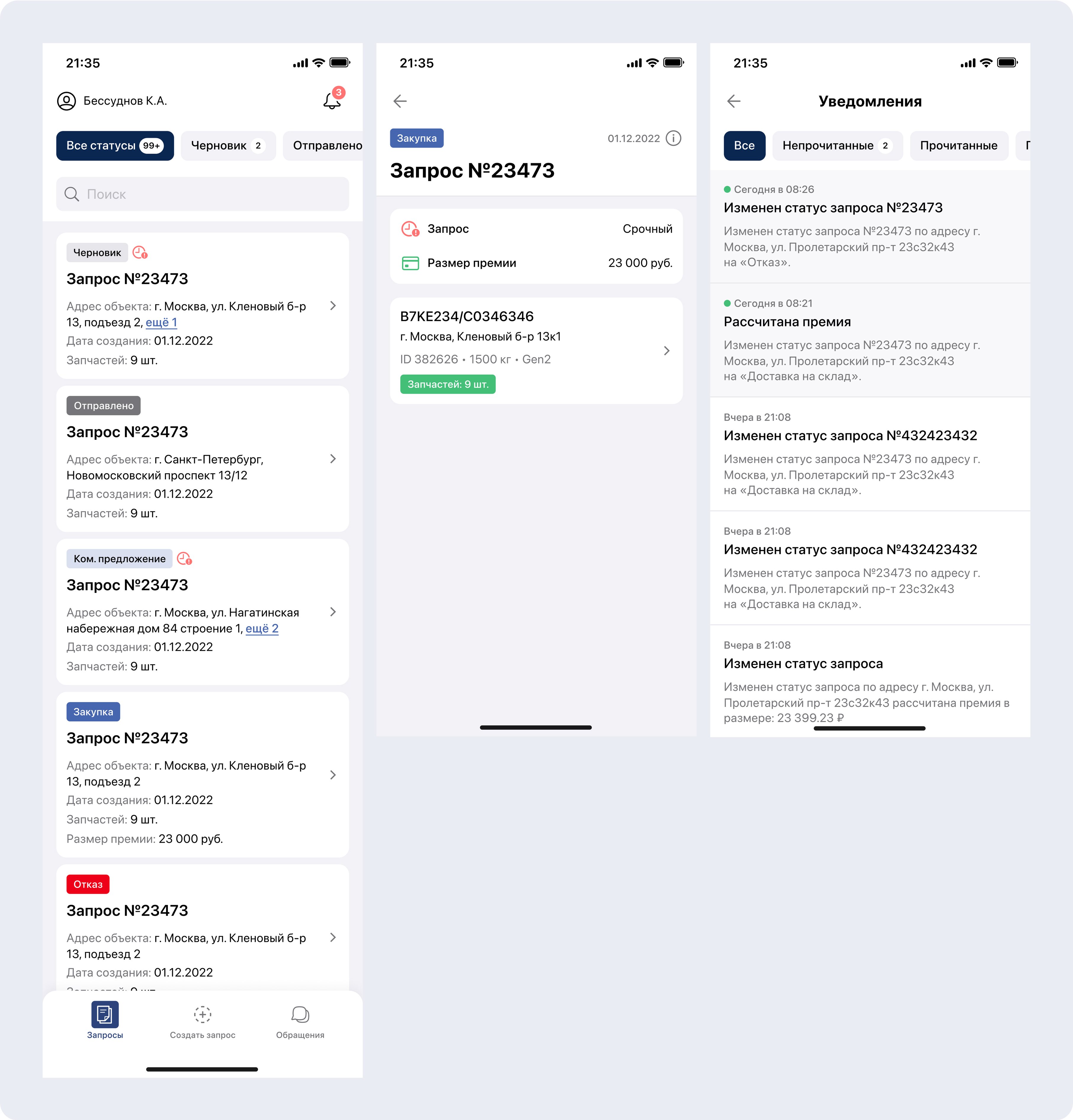 Создание мобильного приложения позволило полностью заменить и упростить “бумажный” процесс размещения запросов на покупку запчастей без лишнего документооборота.