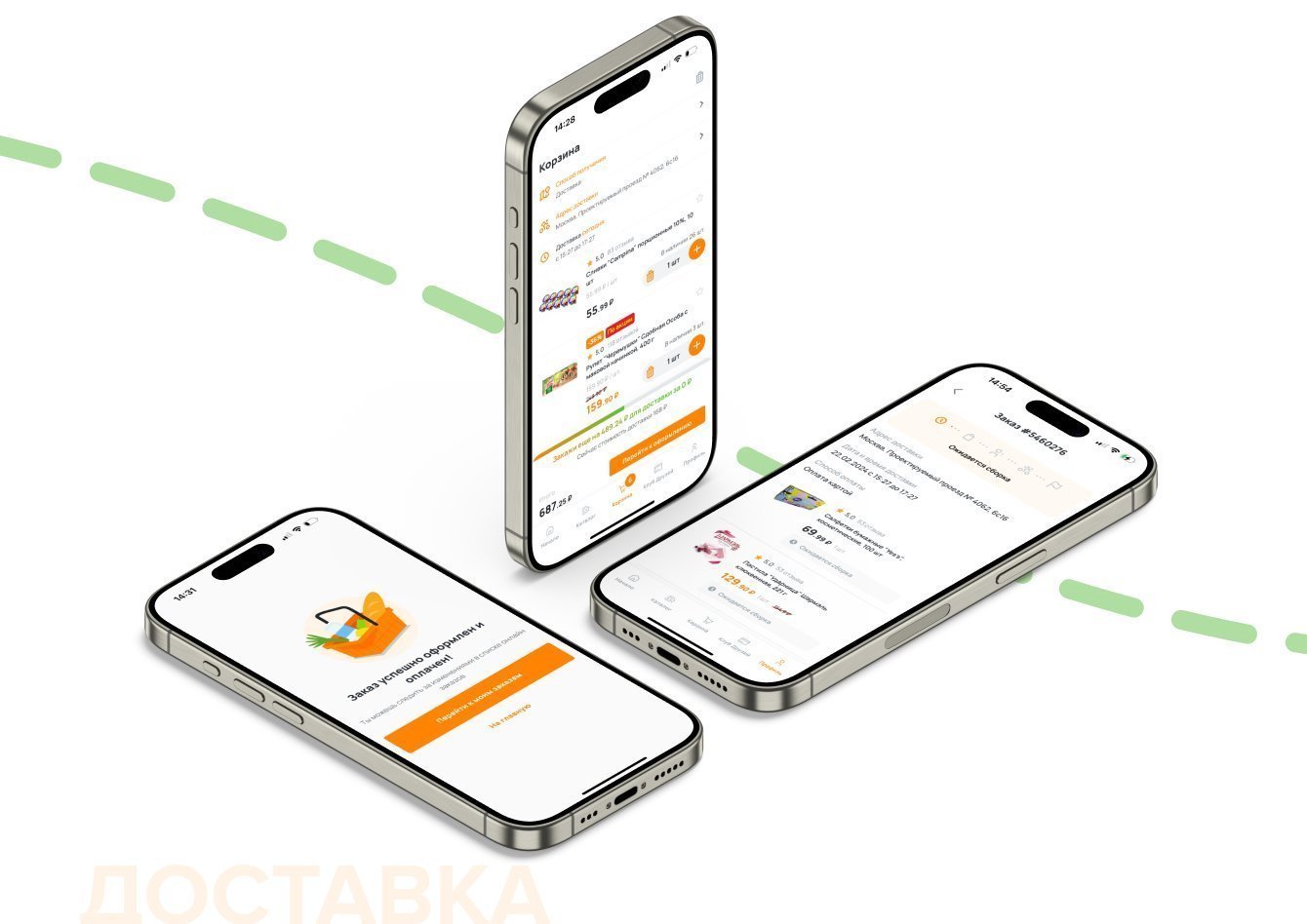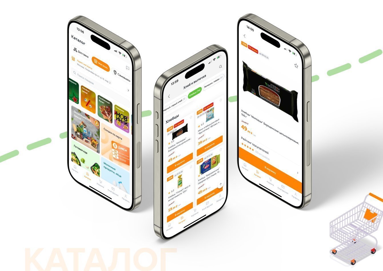 – Онлайн-доставка — для нее действует самостоятельный каталог с доступными позициями для заказа, клиенту виден прогресс-бар от сборки до доставки по адресу.